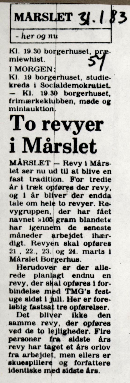 1983: To revyer i MÃ¥rslet - Festlig afslutning - Revy med overraskelser