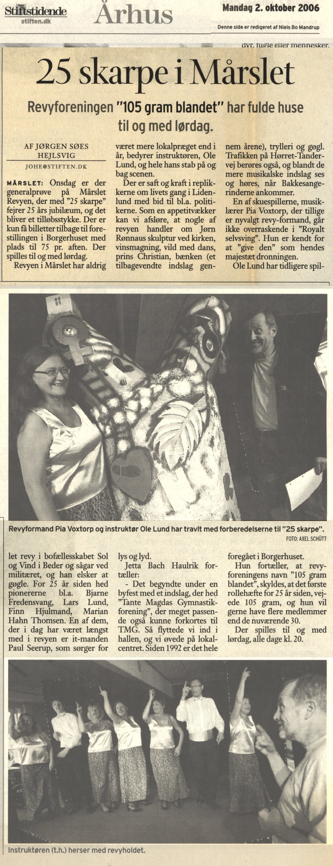 2006: 25 skarpe i Mårslet - Revyforeningen "105 gram blandet" har fulde huse til og med lørdag
