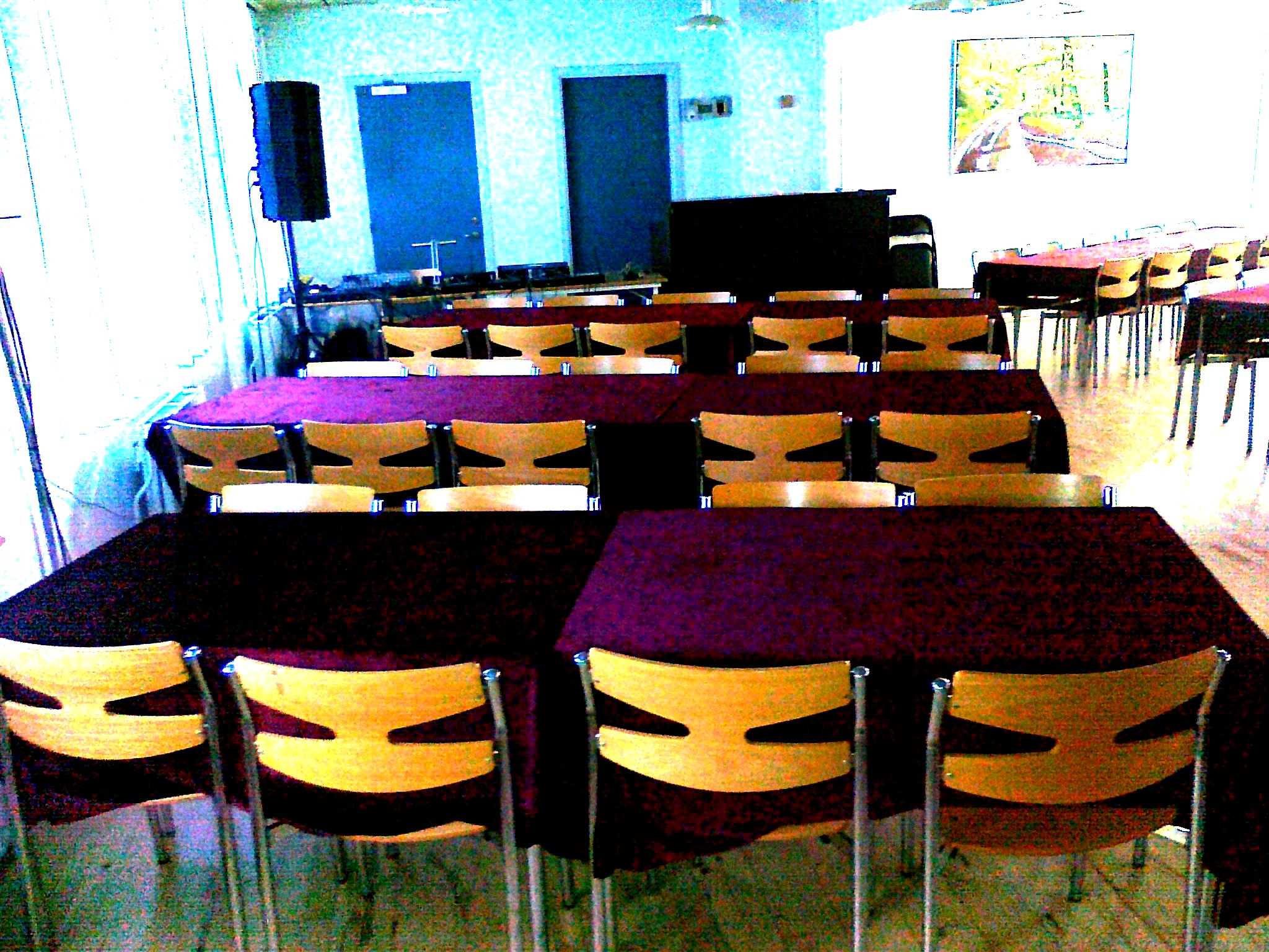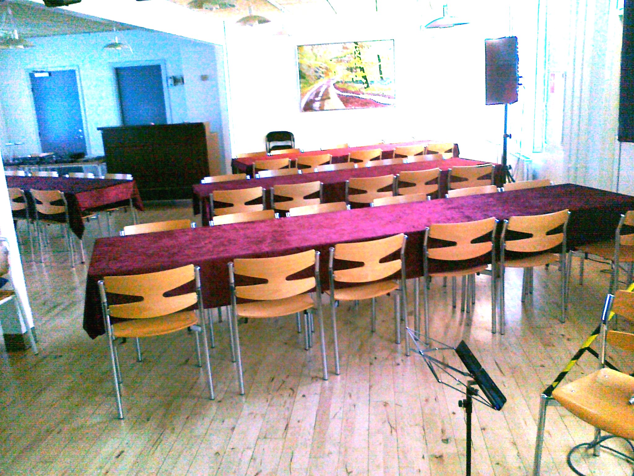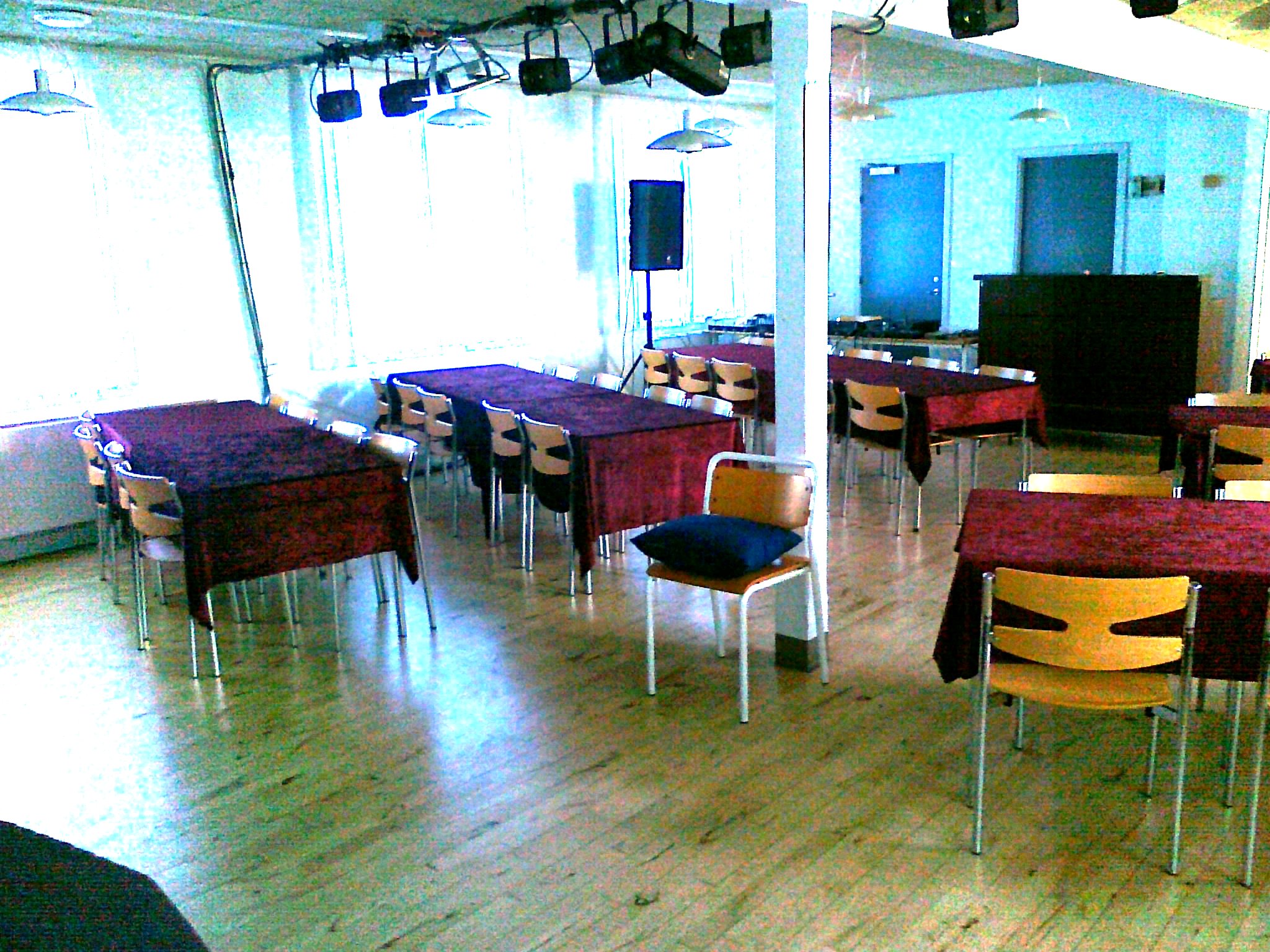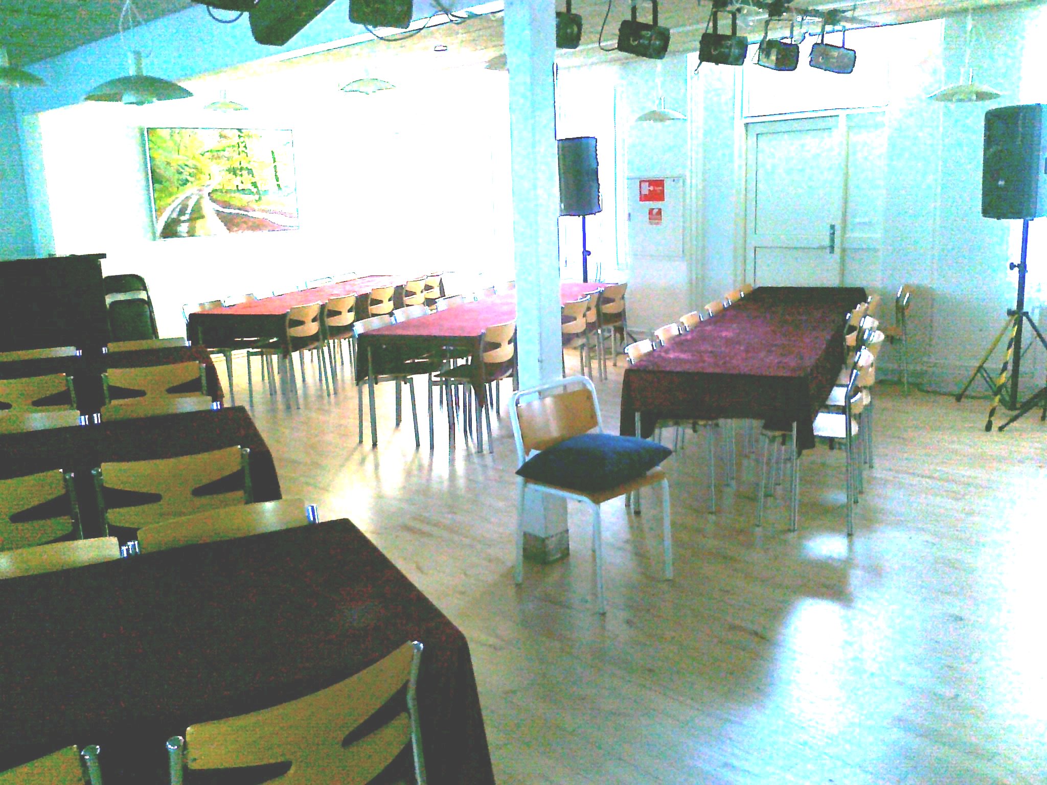 | Billedserien viser bordplacering, der strategisk er skråtstillet, så der bliver det mest optimale synsfelt. Der kan sidde 60 tilskuere og billederne viser også, at det er en intimrevy, da der ikke er ret langt fra tilskuerne til scenekanten. Baren er placeret bagest i salen i tilknytning til et lille depotrum, hvor forsyningerne opbevares.