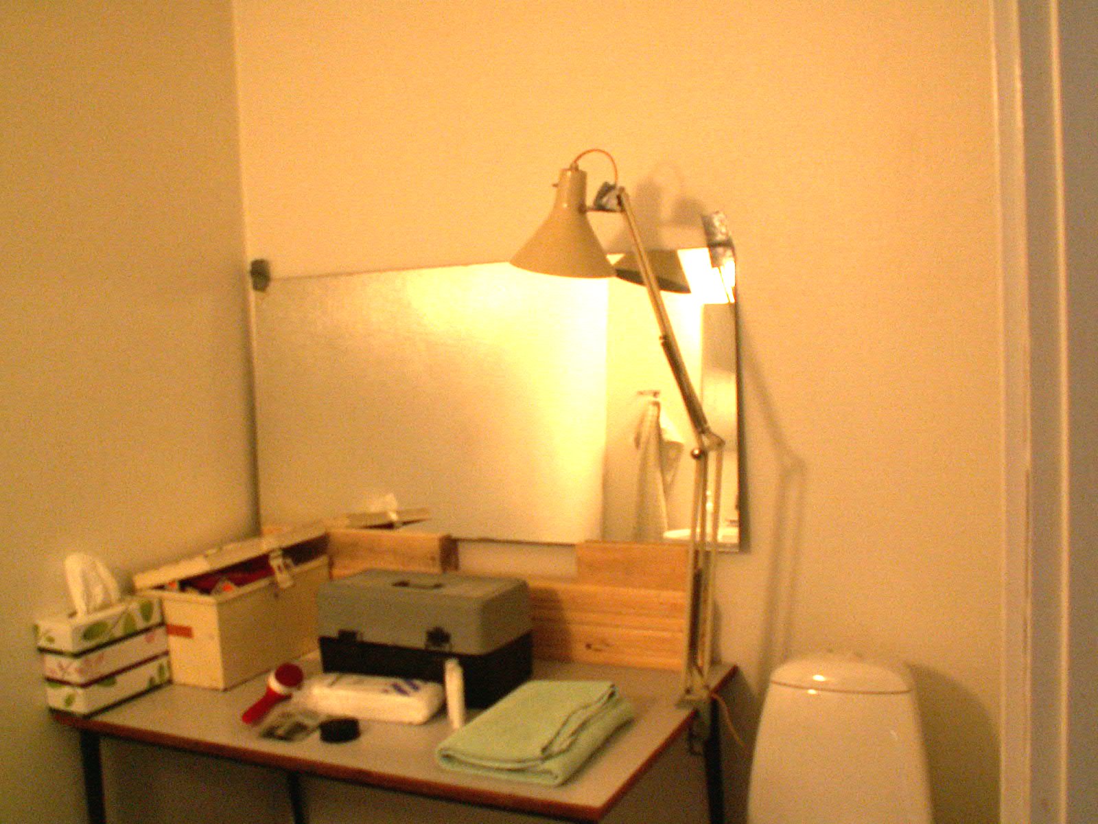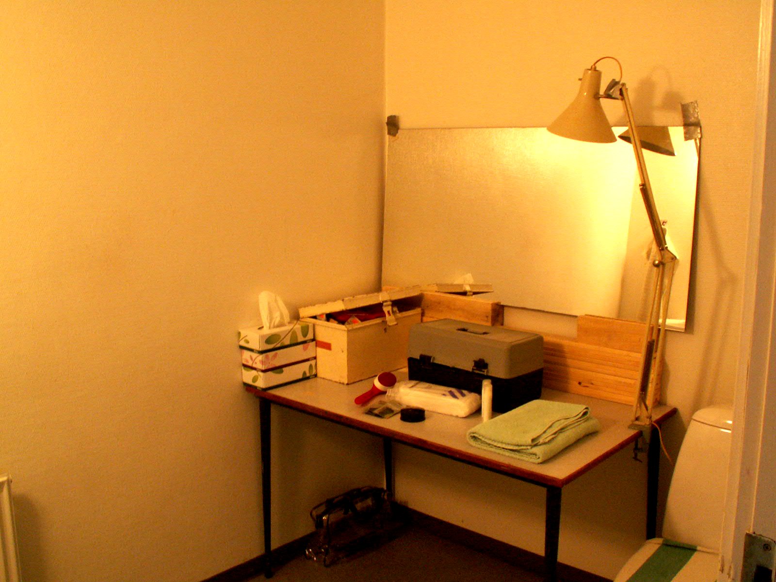 Her ses det formidable sminkerum der benyttes ved opførelse af revyerne.