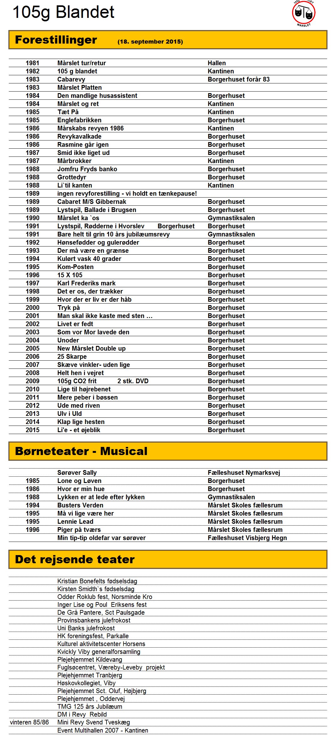 HISTORIE - FORESTILLINGER (Oversigt)
