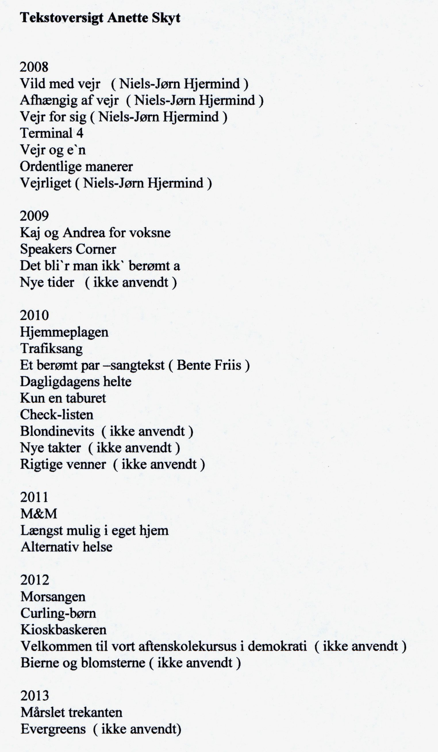 Tekster af Anette Skyt kan læses ved at linke fra kolonnen til venstre.