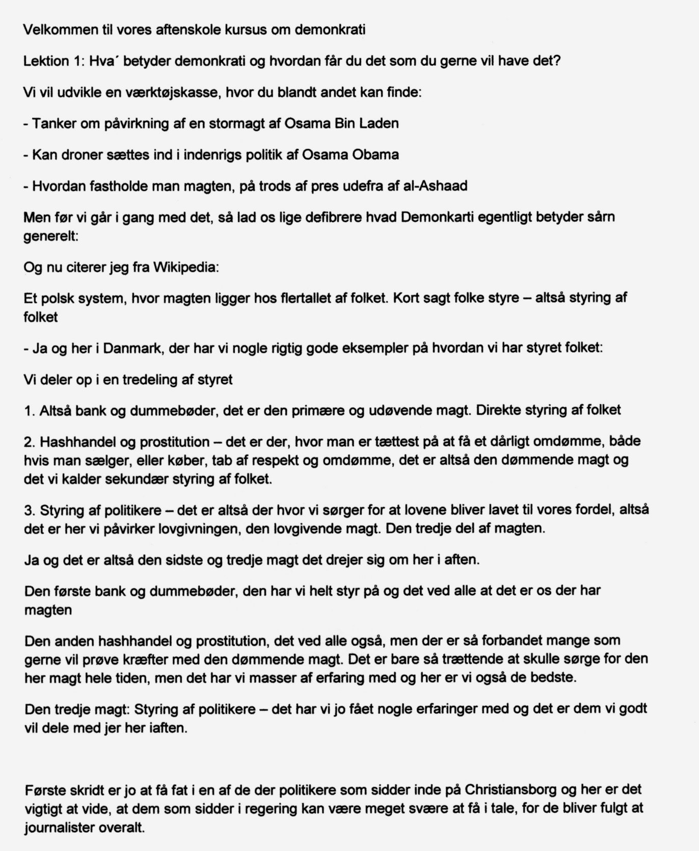 2012: Velkommen til vort aftenskole kursus om demokrati