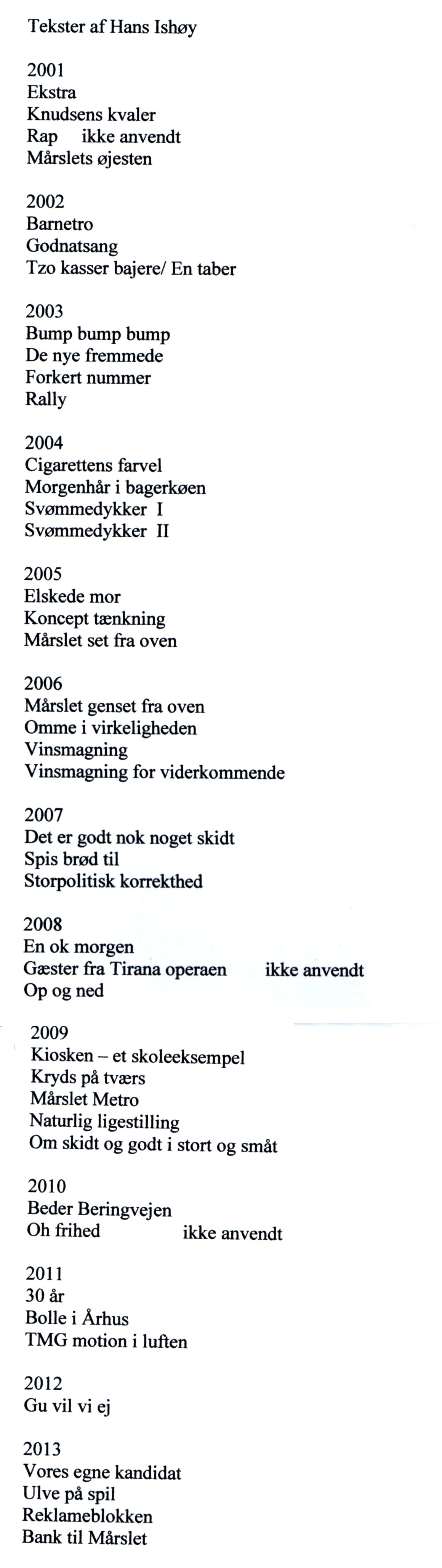 Tekster af Hans Ishøy kan læses ved at linke fra kolonnen til venstre.