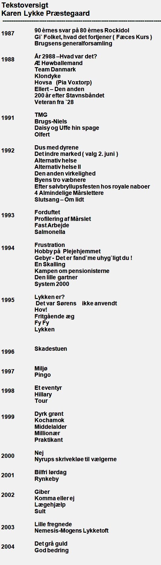 Karen Lykkes tekster kan læses ved at linke fra kolonnen til venstre. .