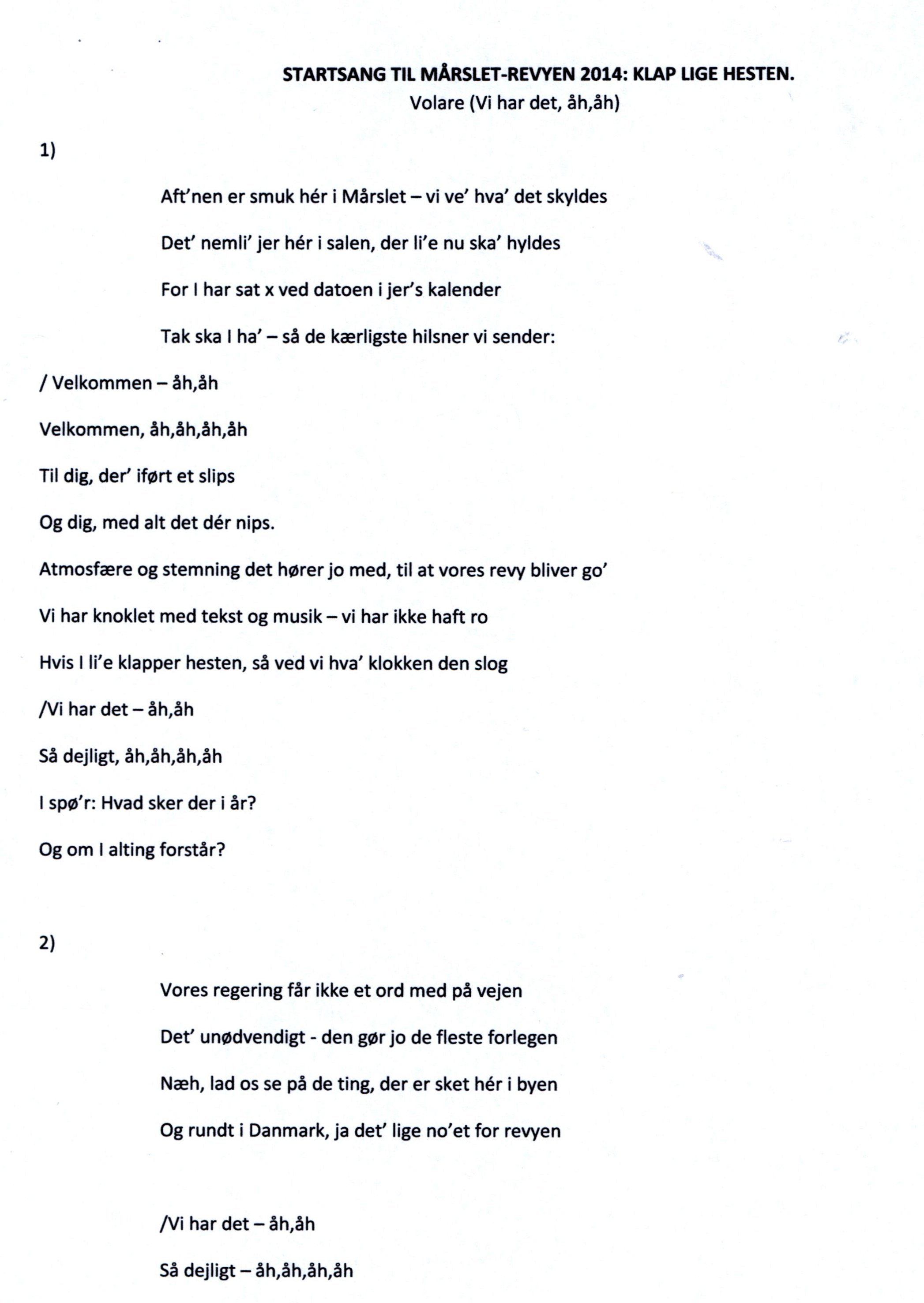 2014: Startsang