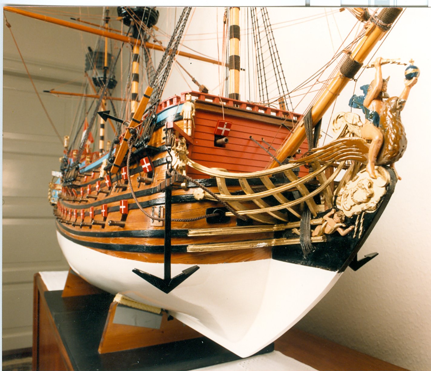 Kirkeskibet før ophængning. Det kan synes mærkeligt, at et så stort skib i en krigssituation fik lov at ligge uvirksom hen, men FREDERICUS QUARTUS var dels en dårlig sejler og dels på grund af sin størrelse meget upraktisk i grundede farvande - og dertil kom, at det kostede mange penge at bemande det store skib med næsten 1000 mand. Skibet var dog endnu brugbart, og det forblev en latent trussel mod vor arvefjende. I 1715 blev det admiralskib for en af flådens tre eskadrer, og i 1717 gennemgik det en hovedreparation - men dette til trods lå det fortsat oplagt i flådens leje. Her blev det liggende til Fr. IV's død i 1730, hvor FREDERICUS QUARTUS udgik af flådens tal, og i 1732 blev skibet ophugget. Billede på Egnsarkivet. Billed ID: B236 Registreret i Arkibas. Billede 2. Billede 3. Billede 4. Billede 5. Billede 6. Billede 7. Billede 8. Billede 9. Billede 10. Billede 11. Billede 12. Billede 13. Billede 14. Billede 15. Billede 16. Billede 17. Billede 18. Billede 19. Billede 20. Billede 21. Billede 22. Læs om FREDERICUS Quartus | ||