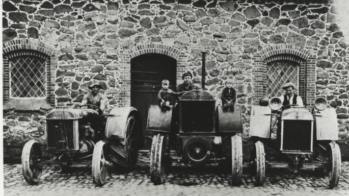 Fortælleren Martin Pedersen på traktoren til venstre.