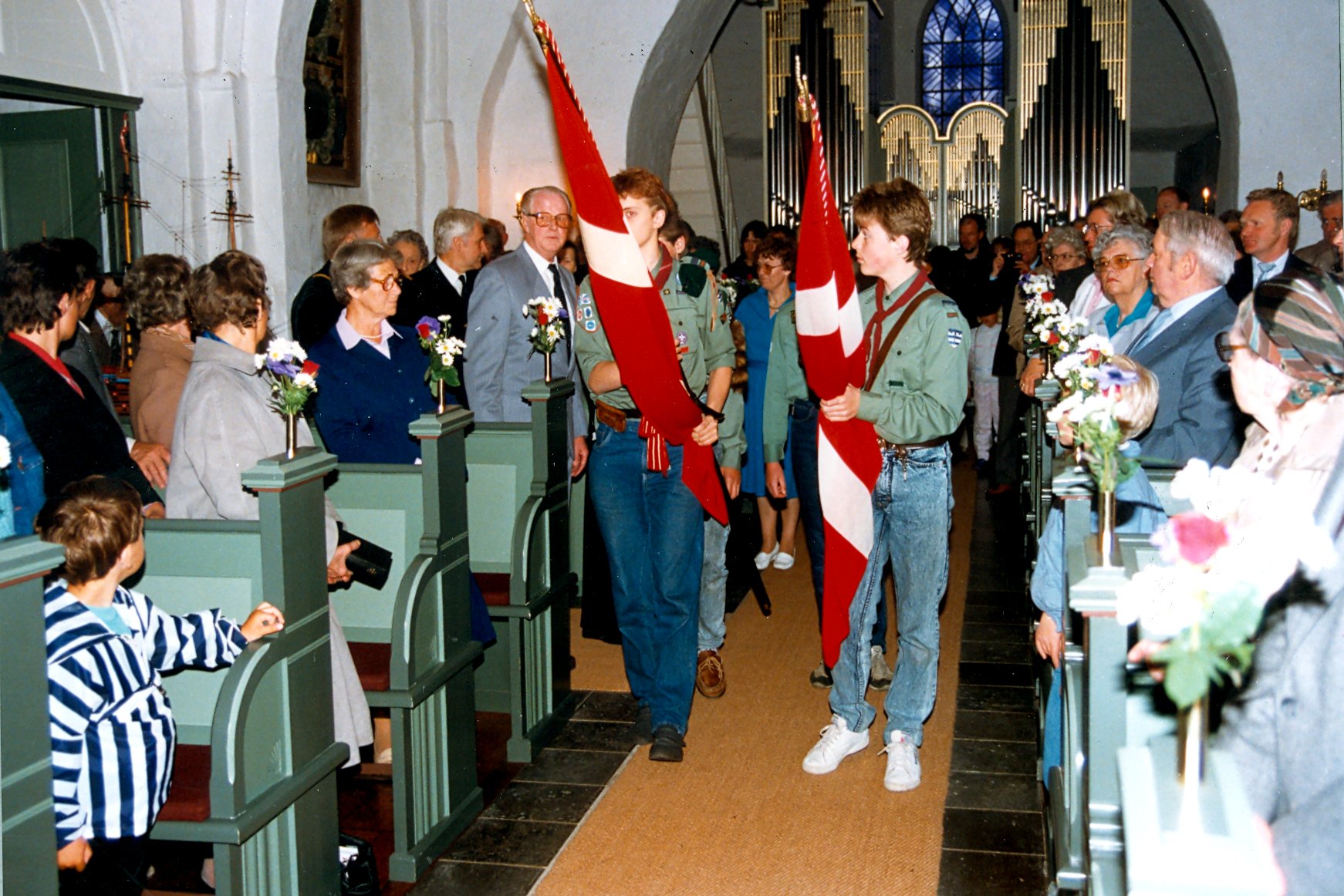 | Mårslet Kirke. Ophængning af kirkeskib 7. juni 1987. | | .