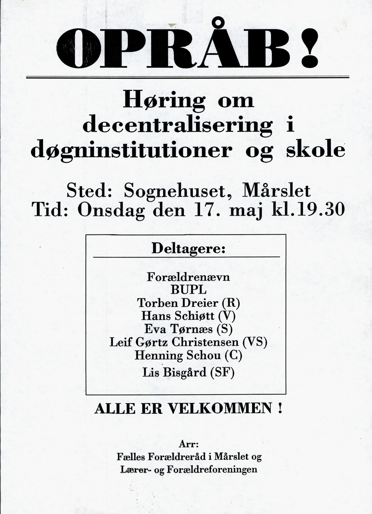 1995: OPRÅB Høring om decentralisering af døgninstitutioner