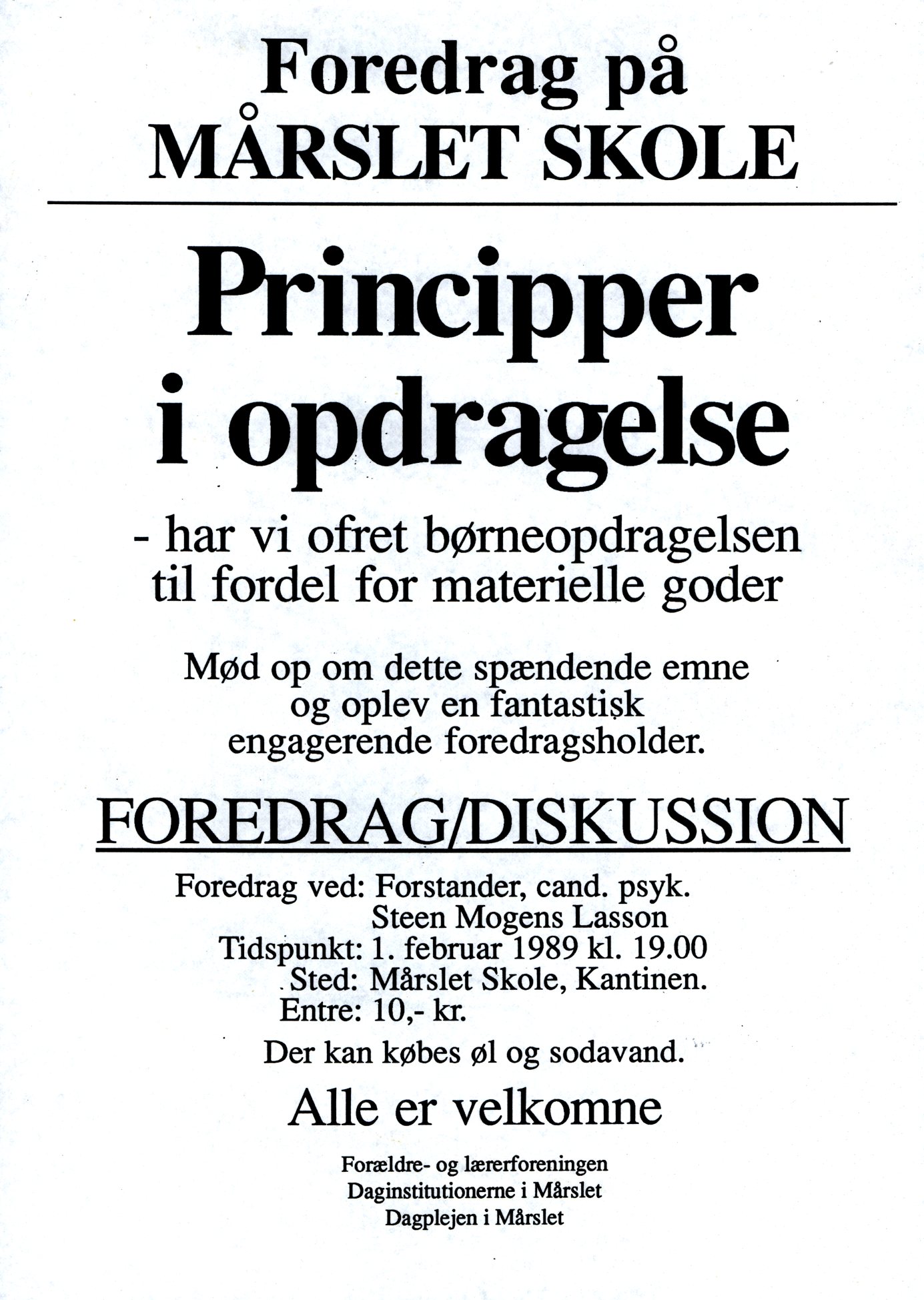 1989: Foredrag på Mårslet Skole - principper i opdragelse