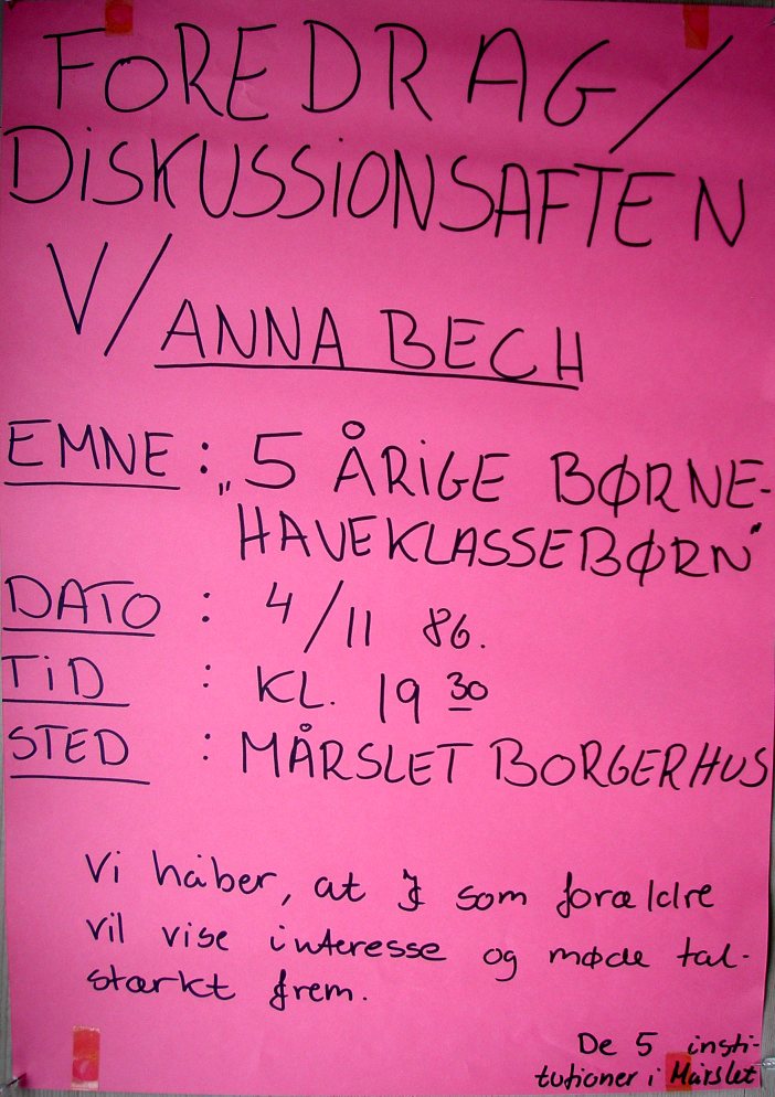 1986: Foredrag / diskussionsaften v/ Anna Bech