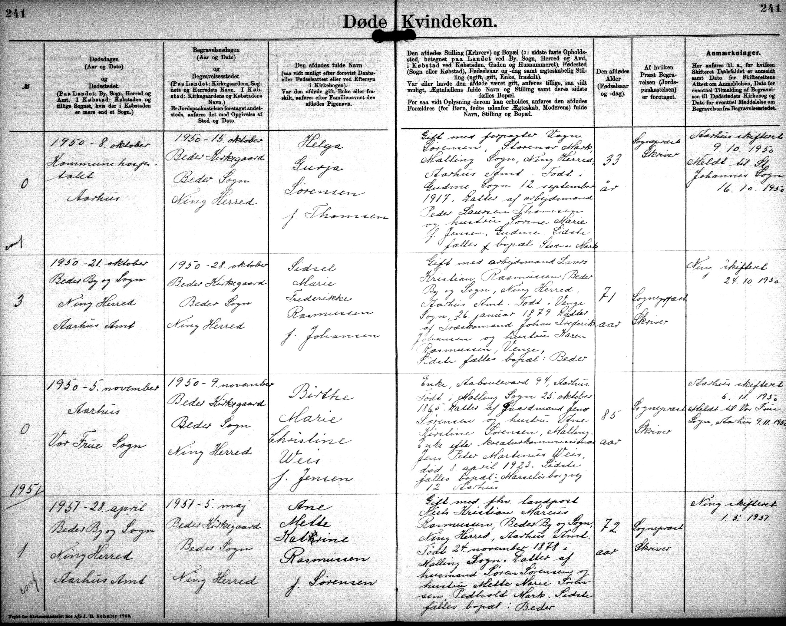 1951. 28. april. Beder By og Sogn - Ning Herred - Aarhus Amt.
