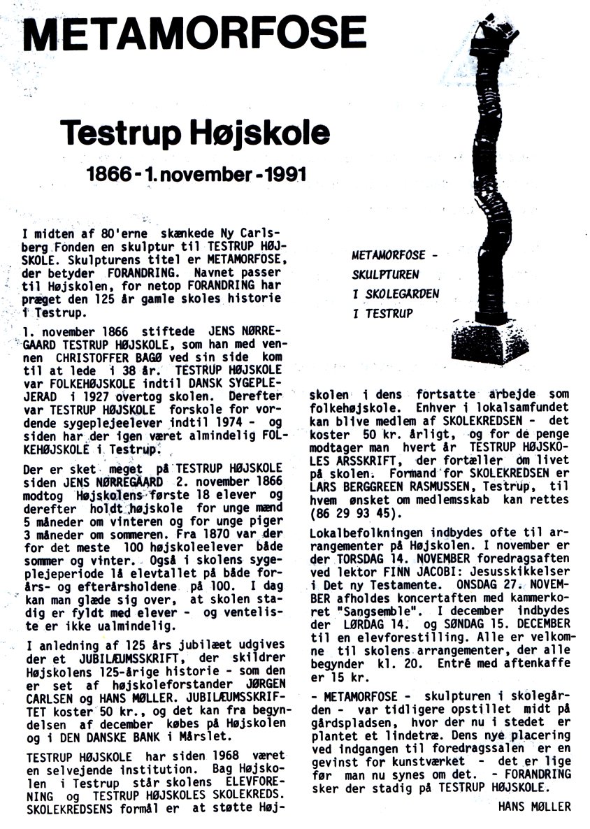 METAMORFOSE. Testrup Højskole 1866 - 1. november 1991.