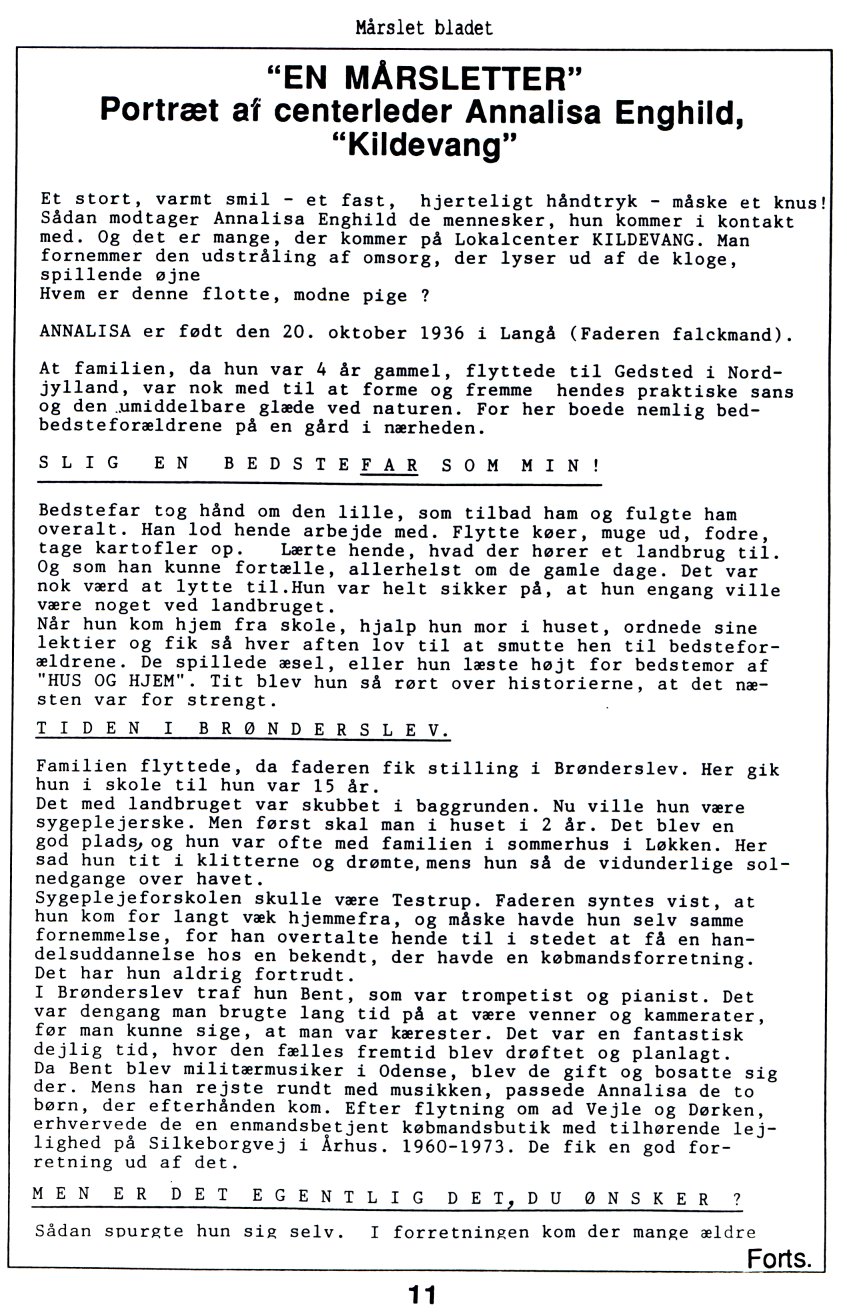 'En Mårsletter' - Portræt af centerleder Annalise Enghild, "Kildevang".