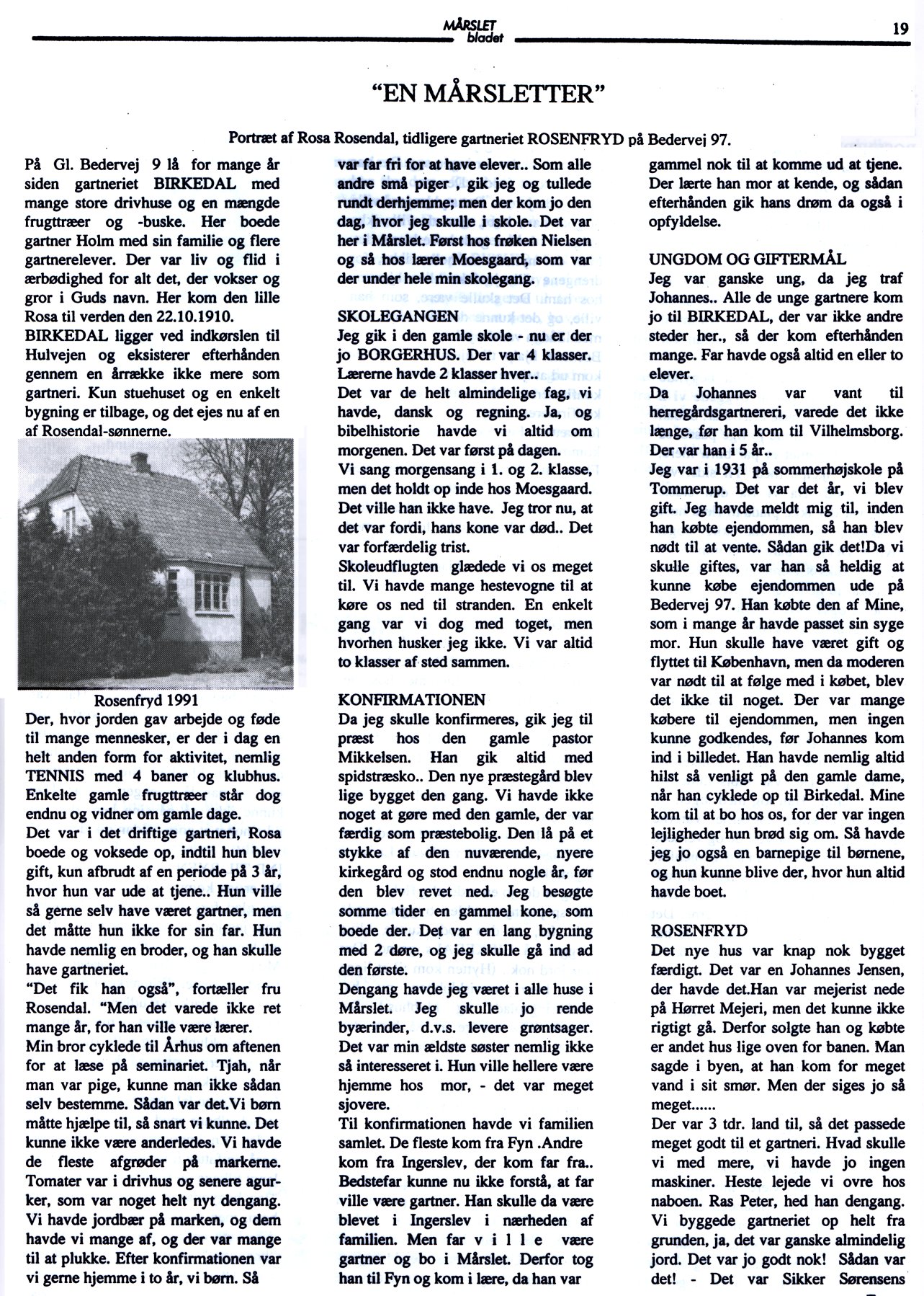 Portræt af Rosa Rosendal, tidligere gartneriet ROSENFRYD på Bedervej 97.