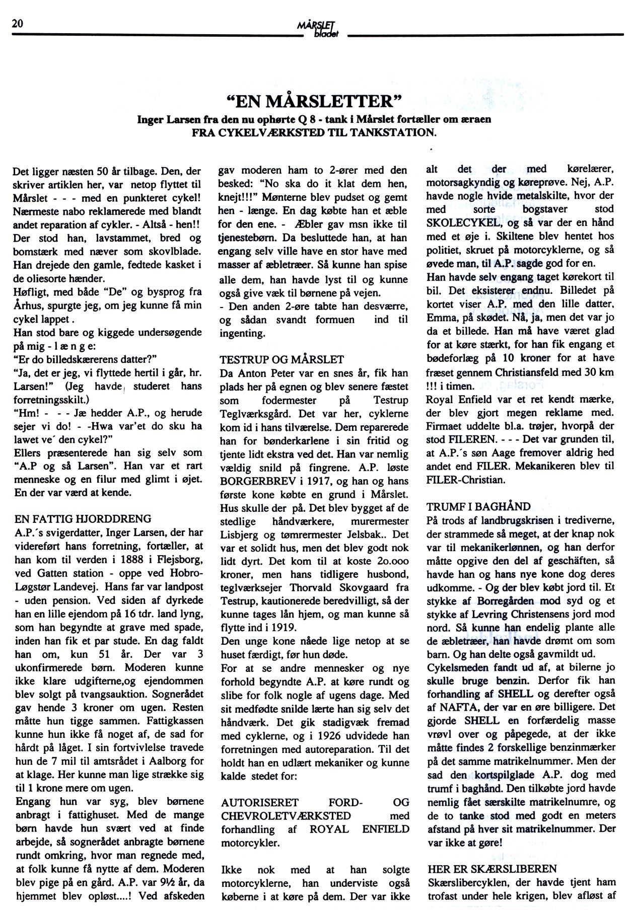 'En Mårsletter' - Inger Larsen fra den ophørte Q 8 - tank i Mårslet fortæller om æraen FRA CYKELVÆRKSTED TIL TANKSTATION.