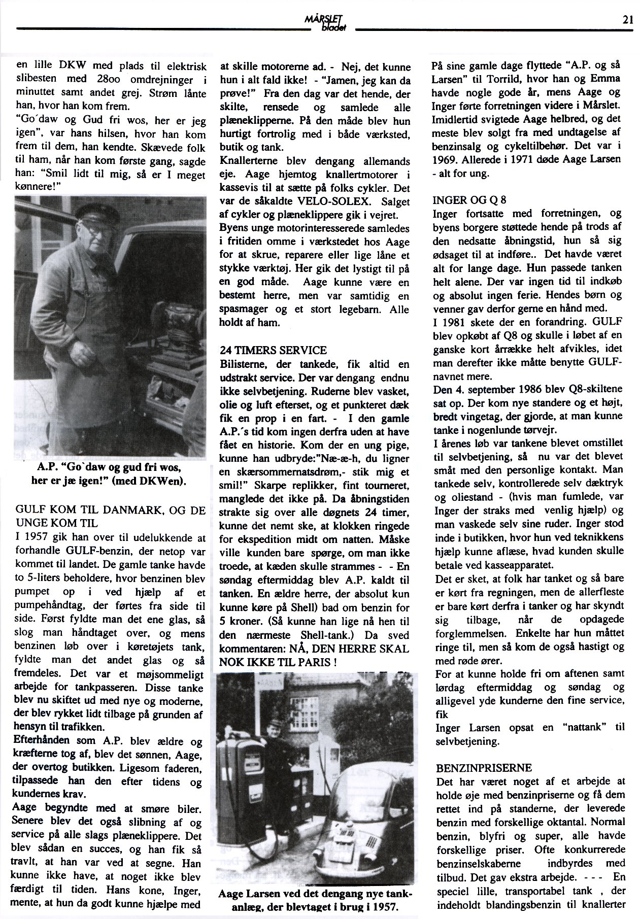 'En Mårsletter' - Inger Larsen fra den ophørte Q 8 - tank i Mårslet fortæller om æraen FRA CYKELVÆRKSTED TIL TANKSTATION.