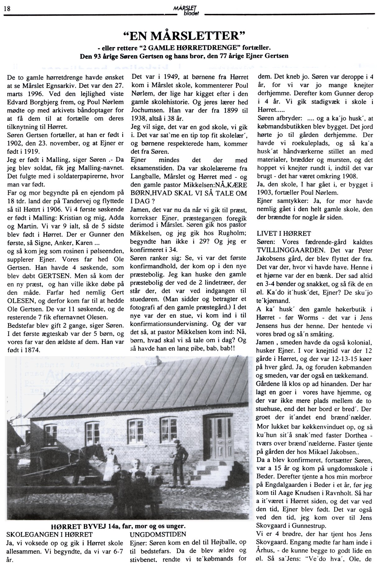 'En Mårsletter' - eller rettere ' 2 gamle Hørretdrenge' fortæller. Den 93-årige Søren Gertsen og hans bror, den 77 årige Ejner Gertsen.