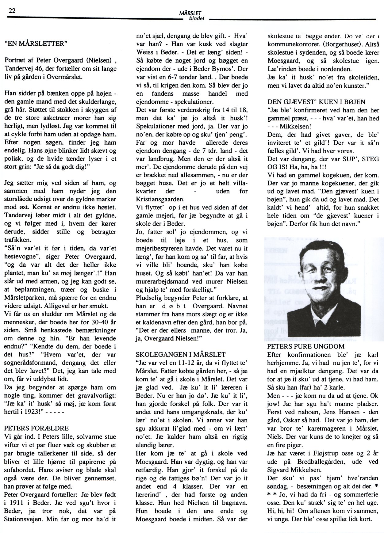 Portræt af Peter Overgaard (Nielsen) Tandervej 46, der fortæller om sit lange liv på gården i Overmårslet