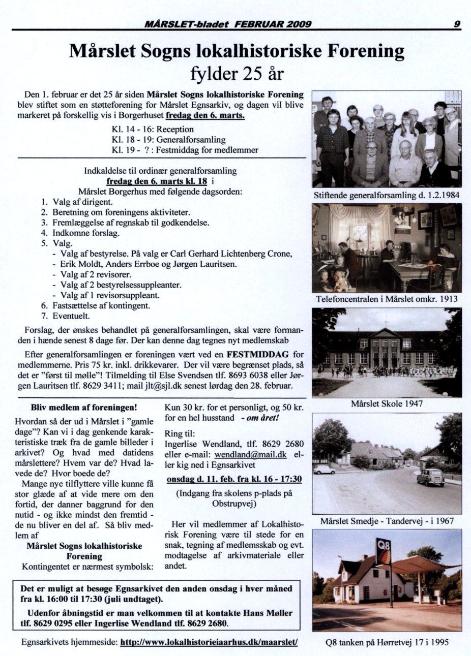 Mårslet Sogns Lokalhistoriske Forening 25 års jubilæum - Generalforsamling.