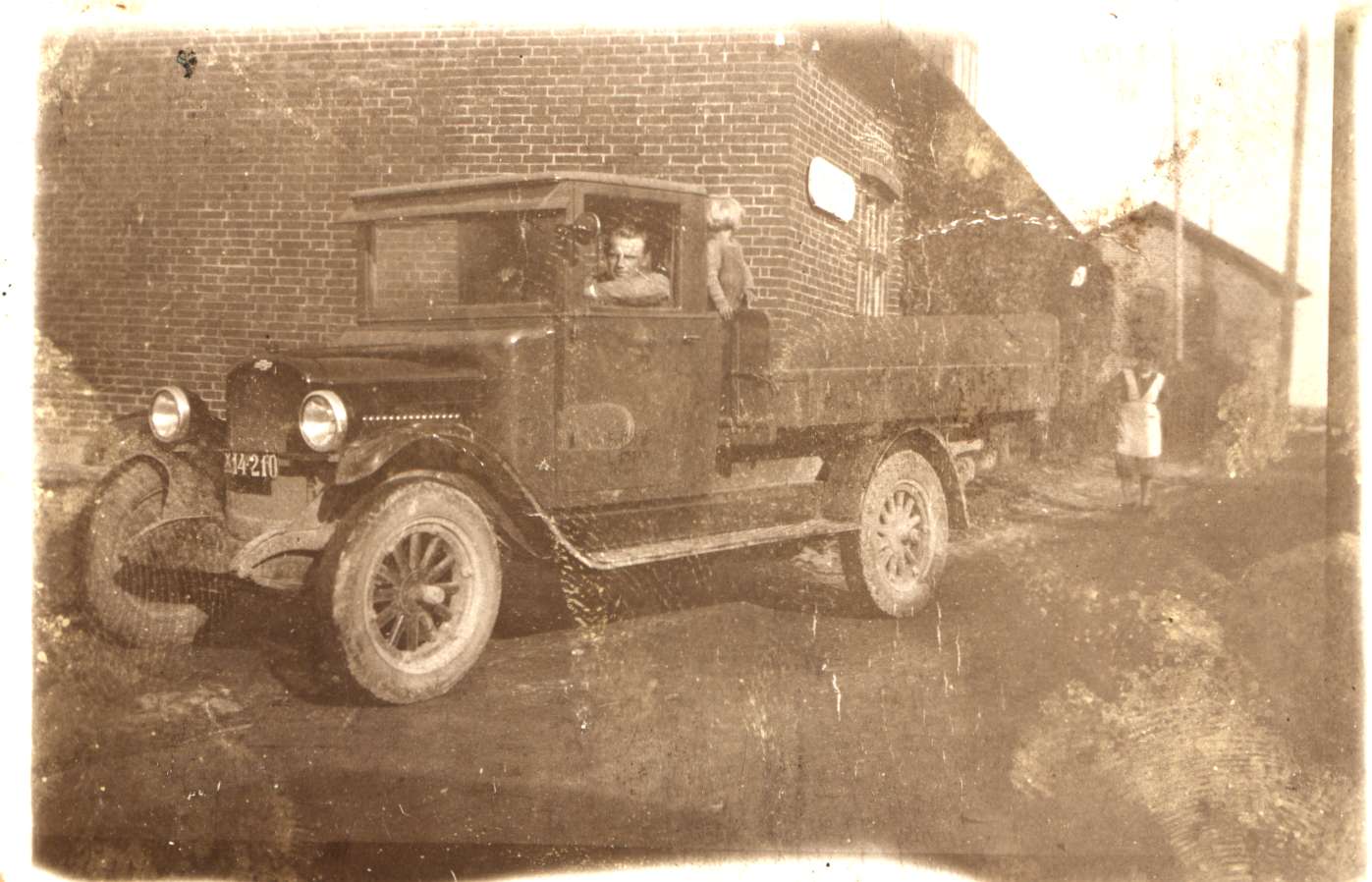 Nok Anker Kristiansens (1903-1985) første lastbil, en Ford, og billedet må være fra omkring 1930 med Anker i førerhuset, datteren Ruth (1924-1950) på ladet, og Marie, Ankers kone (1903-1973) i baggrunden med hvidt forklæde. Stationens pakhus i baggrunden. Nummeret på nummerpladen: X 14-210 Se billede større - tryk på billedet. Billede på Mårslet Egnsarkiv. Billed ID: B663 Registreret i Arkibas.