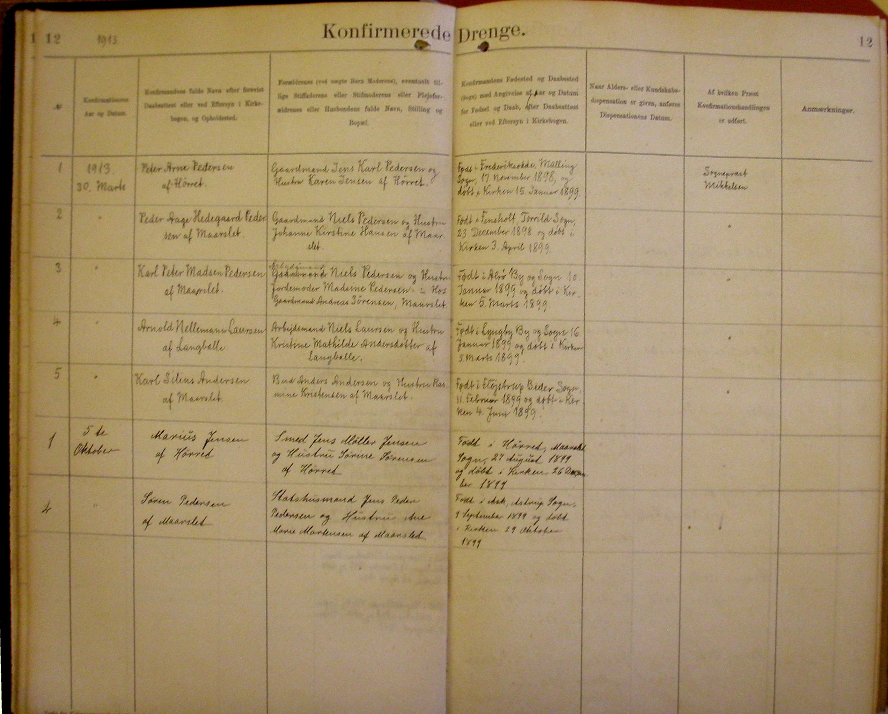 Side 12. 1913. Konfirmerede DRENGE