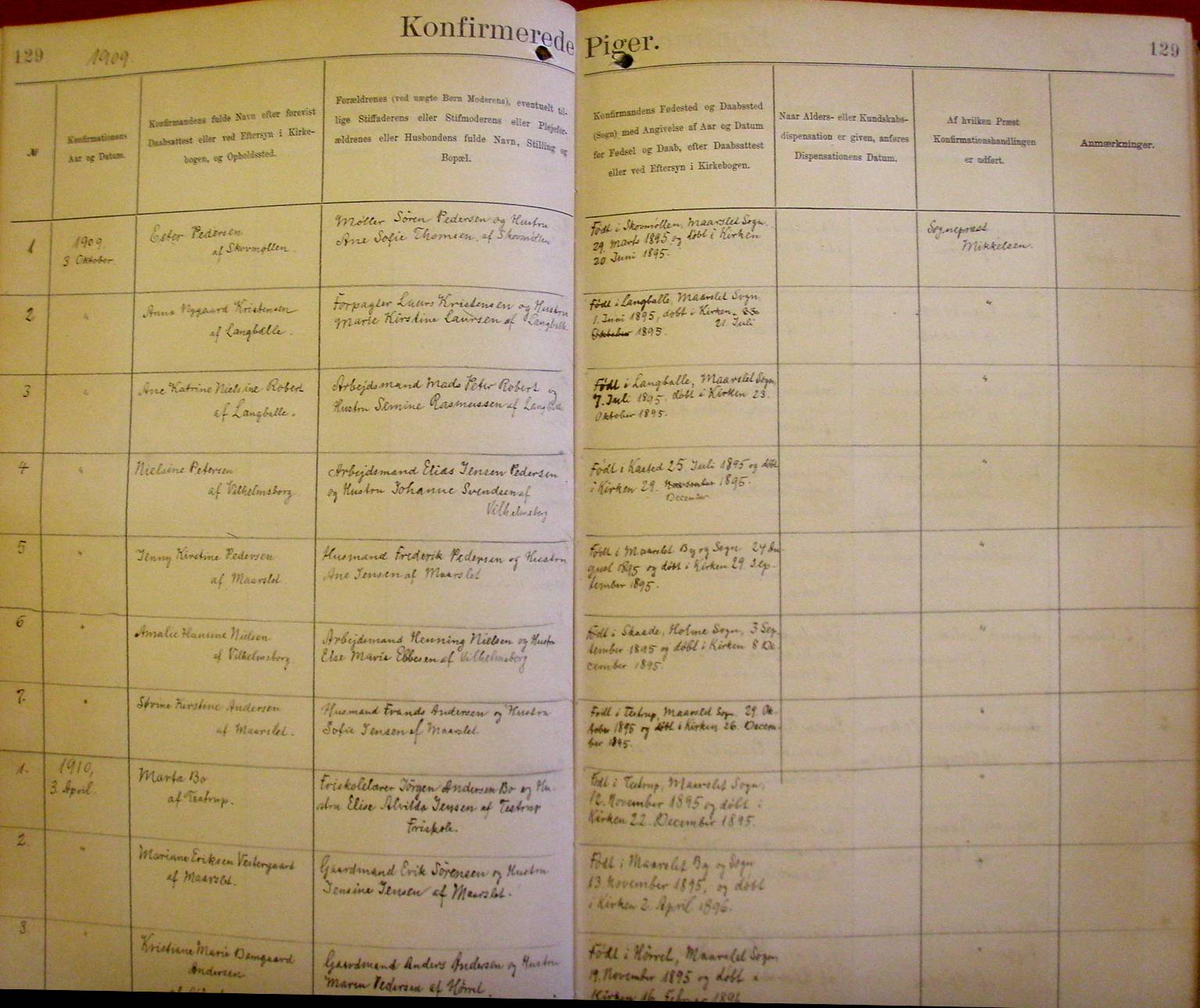 Side 129. 1909 - 1910. Konfirmerede PIGER