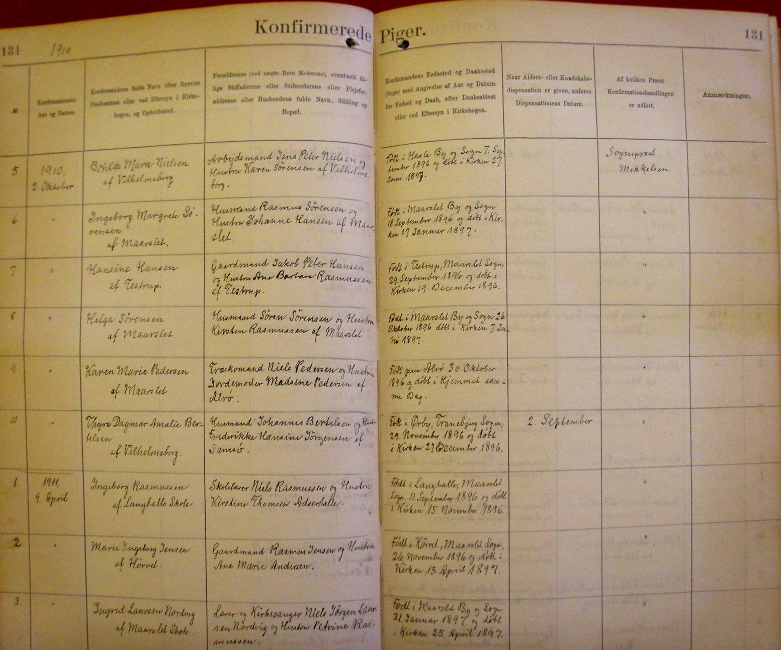 Side 131. 1910 - 1911. Konfirmerede PIGER