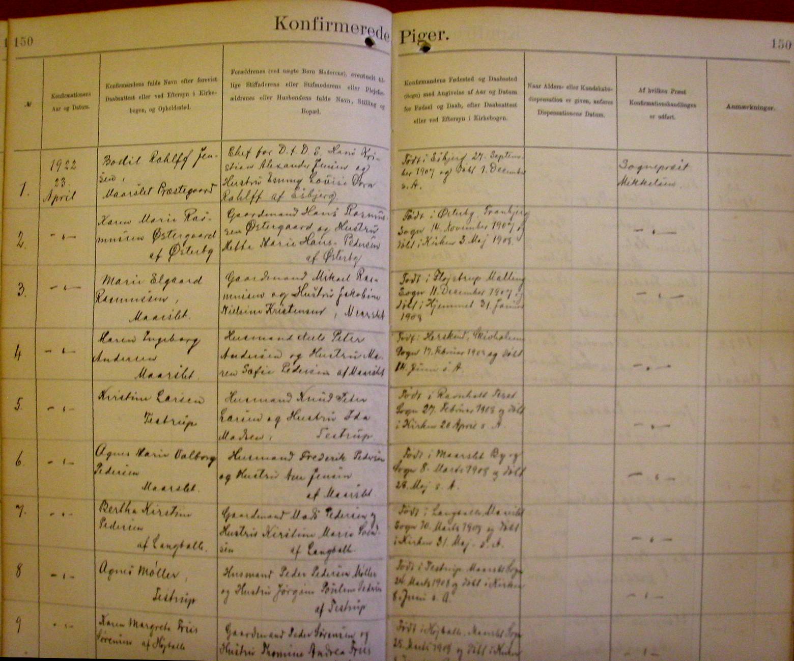 Side 150. 1922. Konfirmerede PIGER