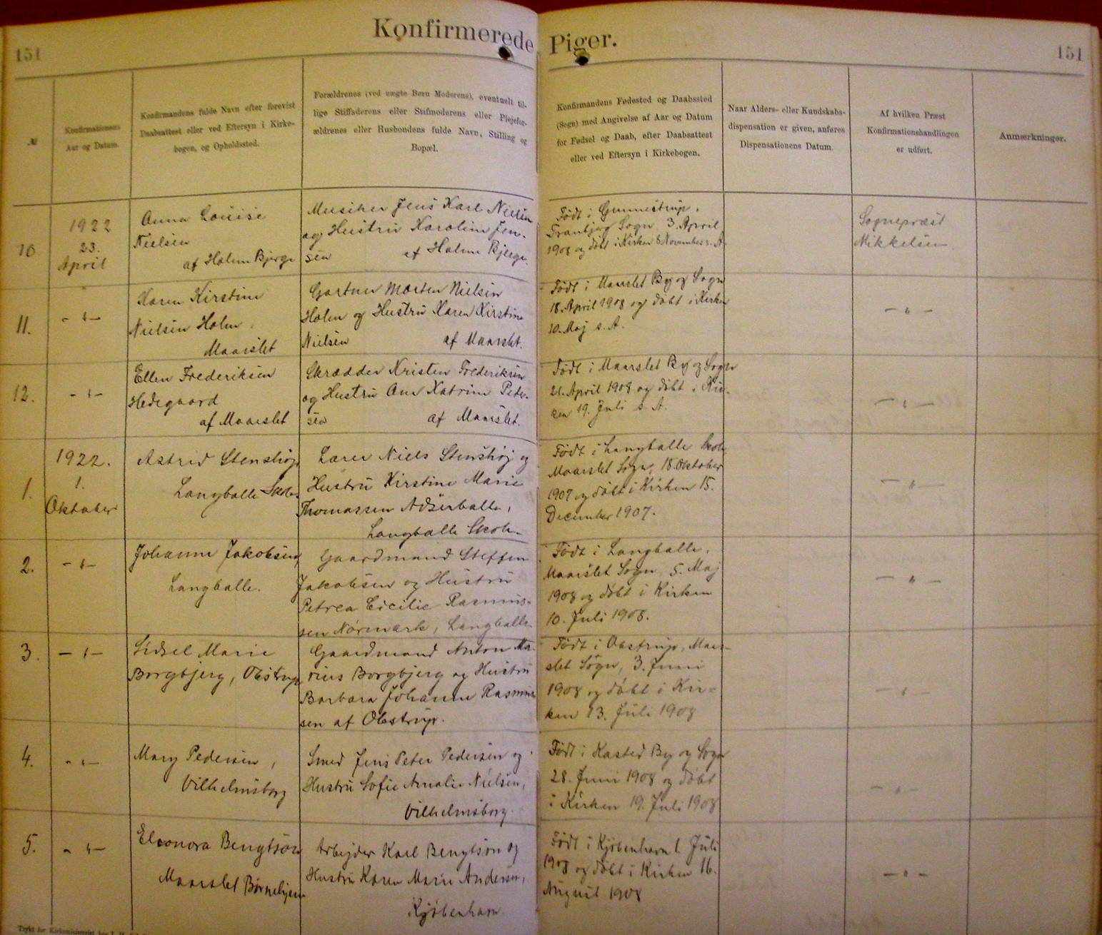 Side 151. 1922. Konfirmerede PIGER