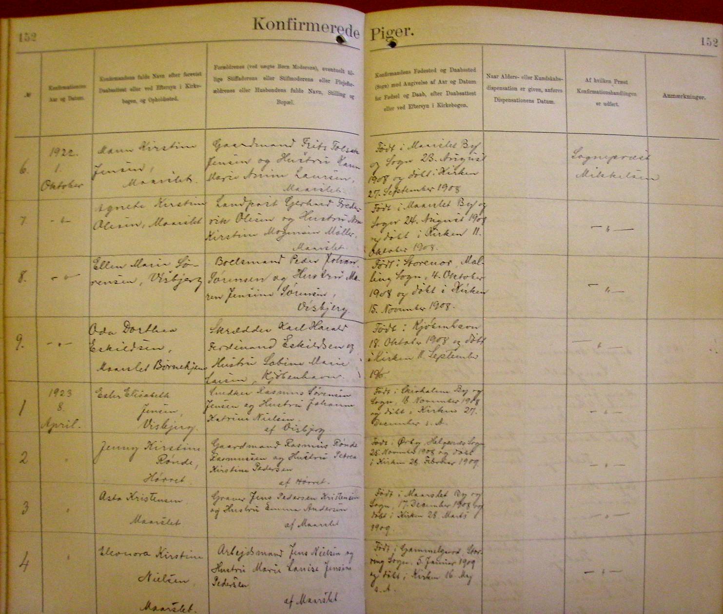 Side 152. 1922 - 1923. Konfirmerede PIGER