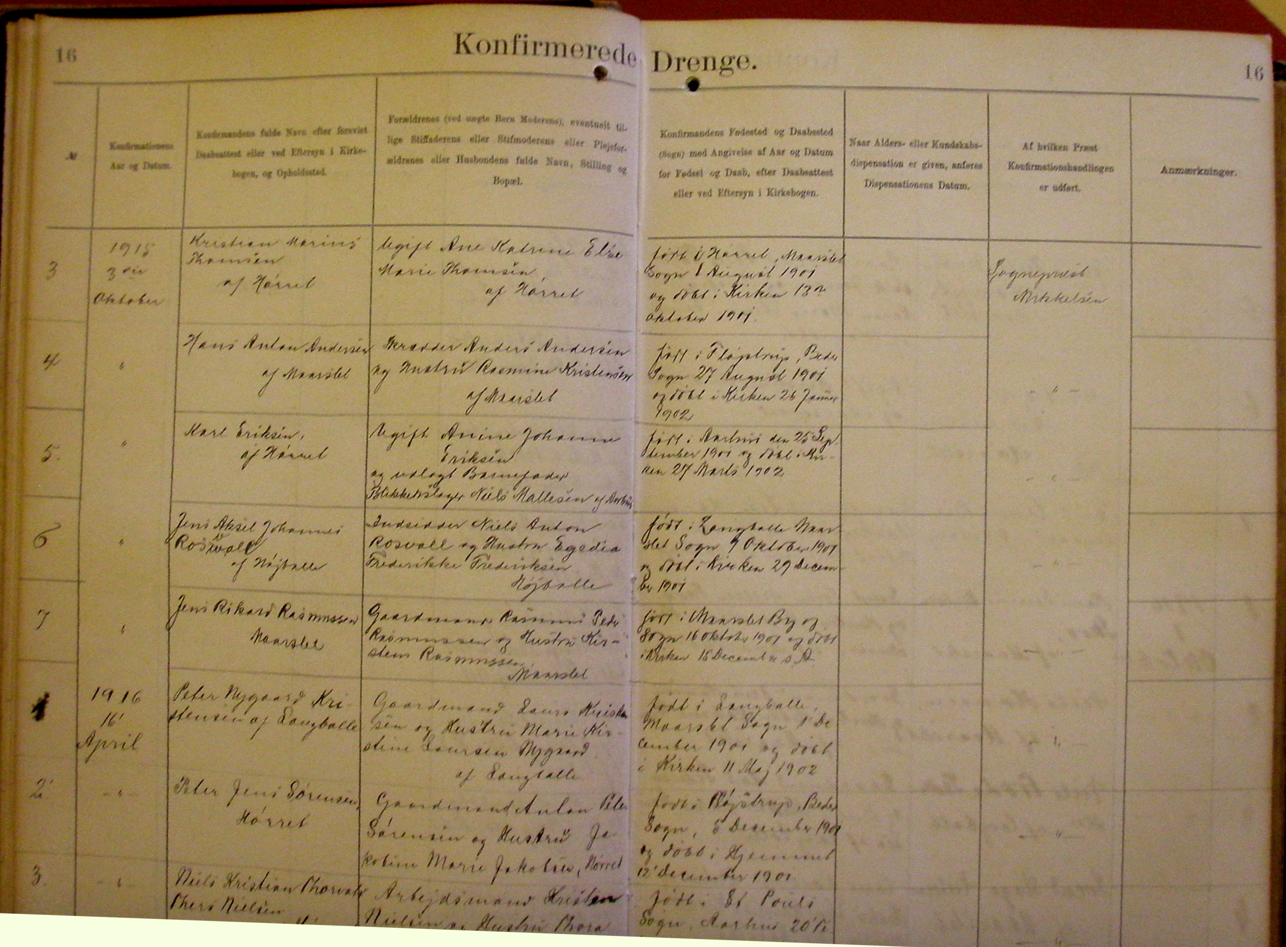 Side 16. 1915-1916. Konfirmerede DRENGE
