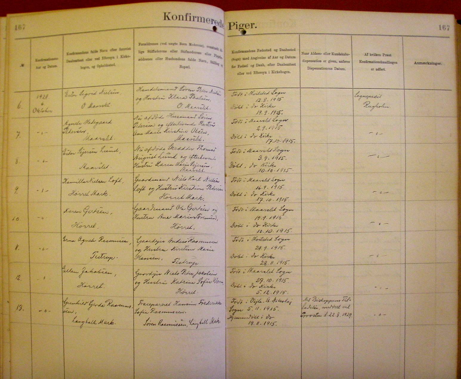 Side 167. 1929. Konfirmerede PIGER