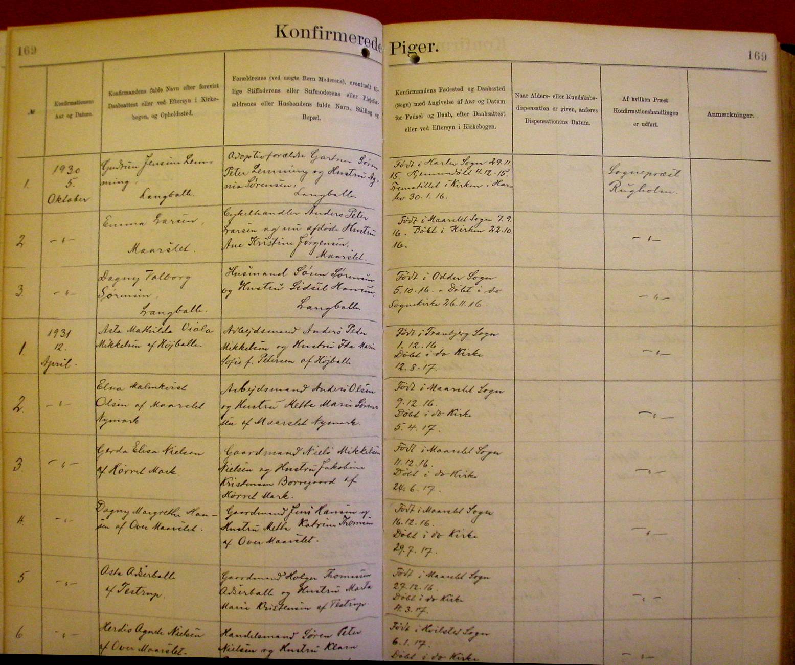 Side 169. 1930 - 1931. Konfirmerede PIGER