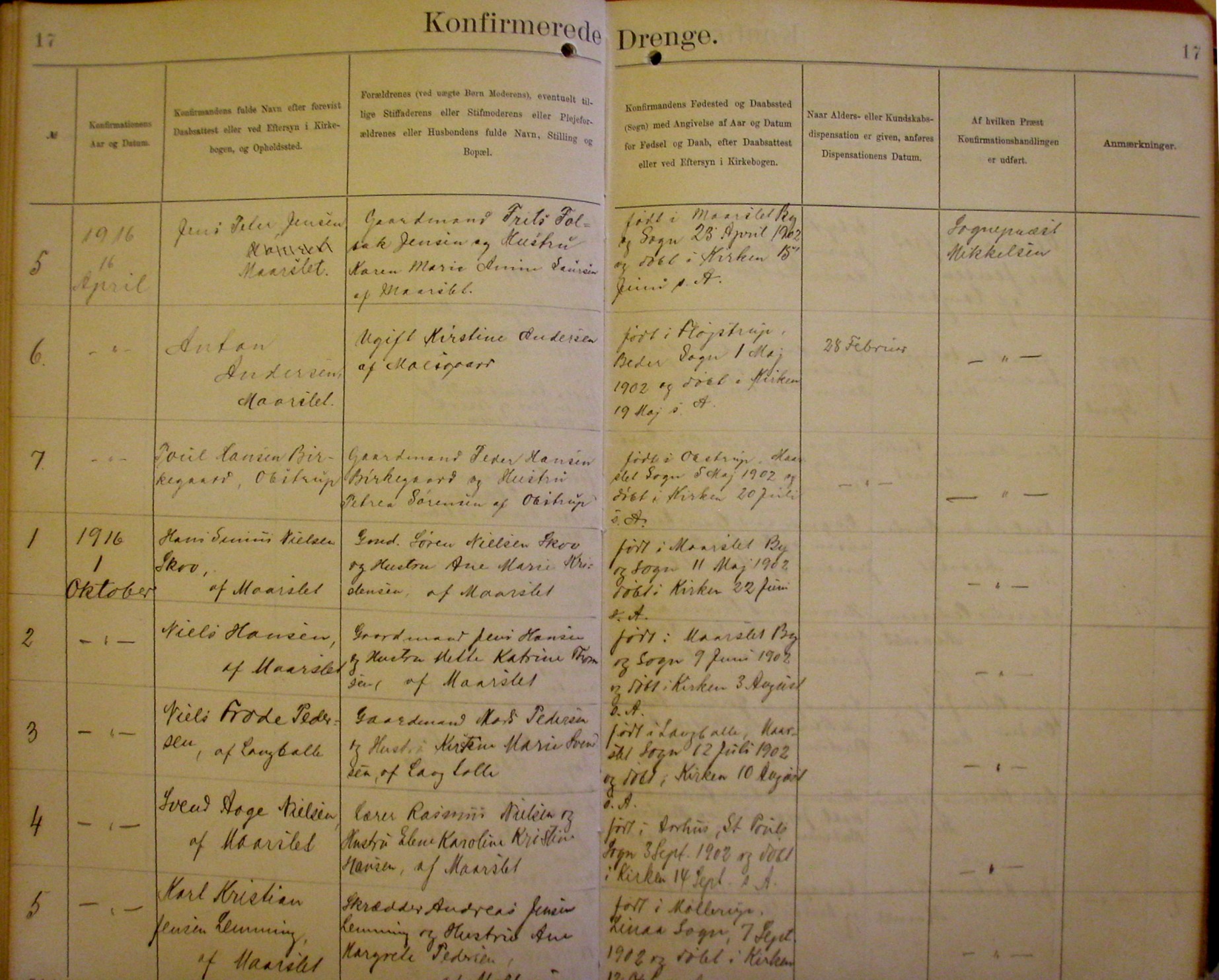 Side 17. 1916. Konfirmerede DRENGE