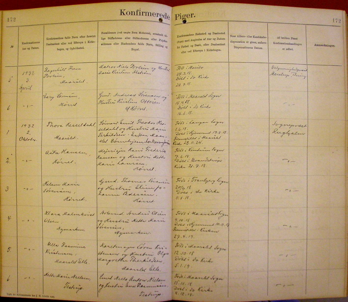 Side 172. 1932. Konfirmerede PIGER