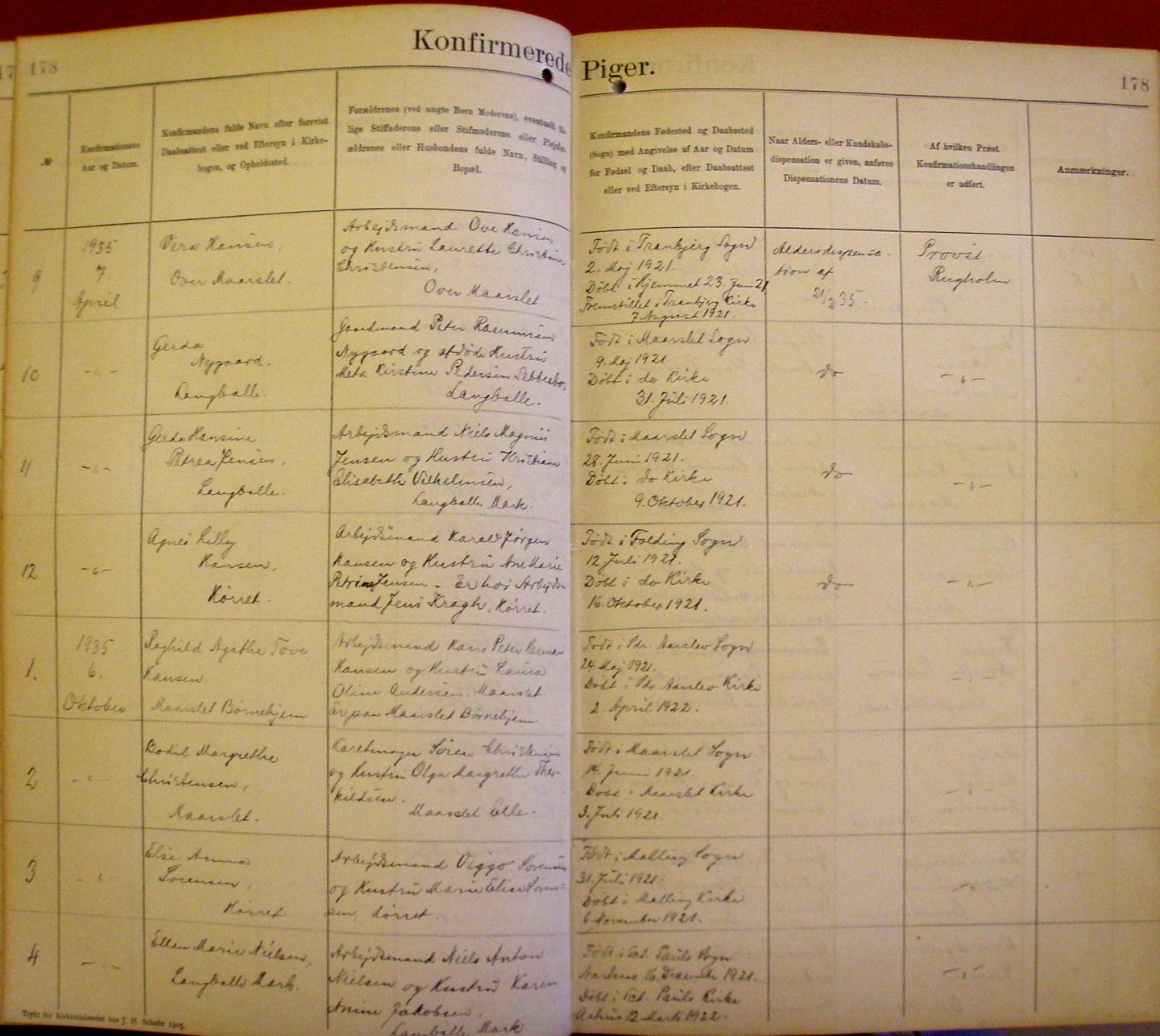 Side 178. 1935. Konfirmerede PIGER