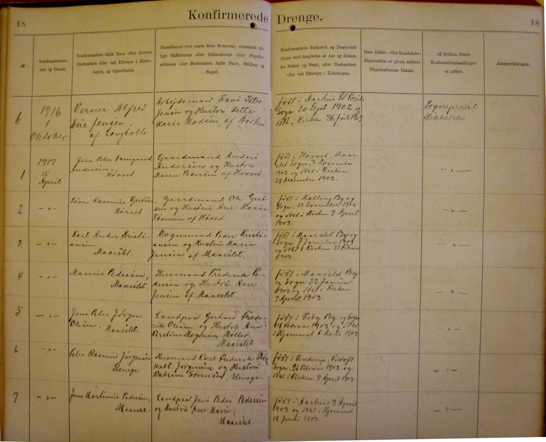 Side 18. 1916-1917. Konfirmerede DRENGE