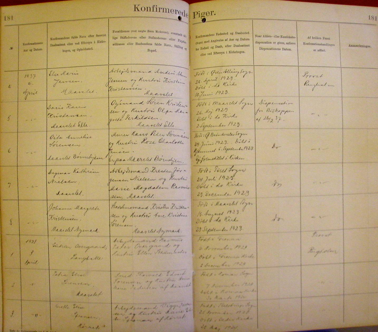 Side 181. 1937 - 1938. Konfirmerede PIGER