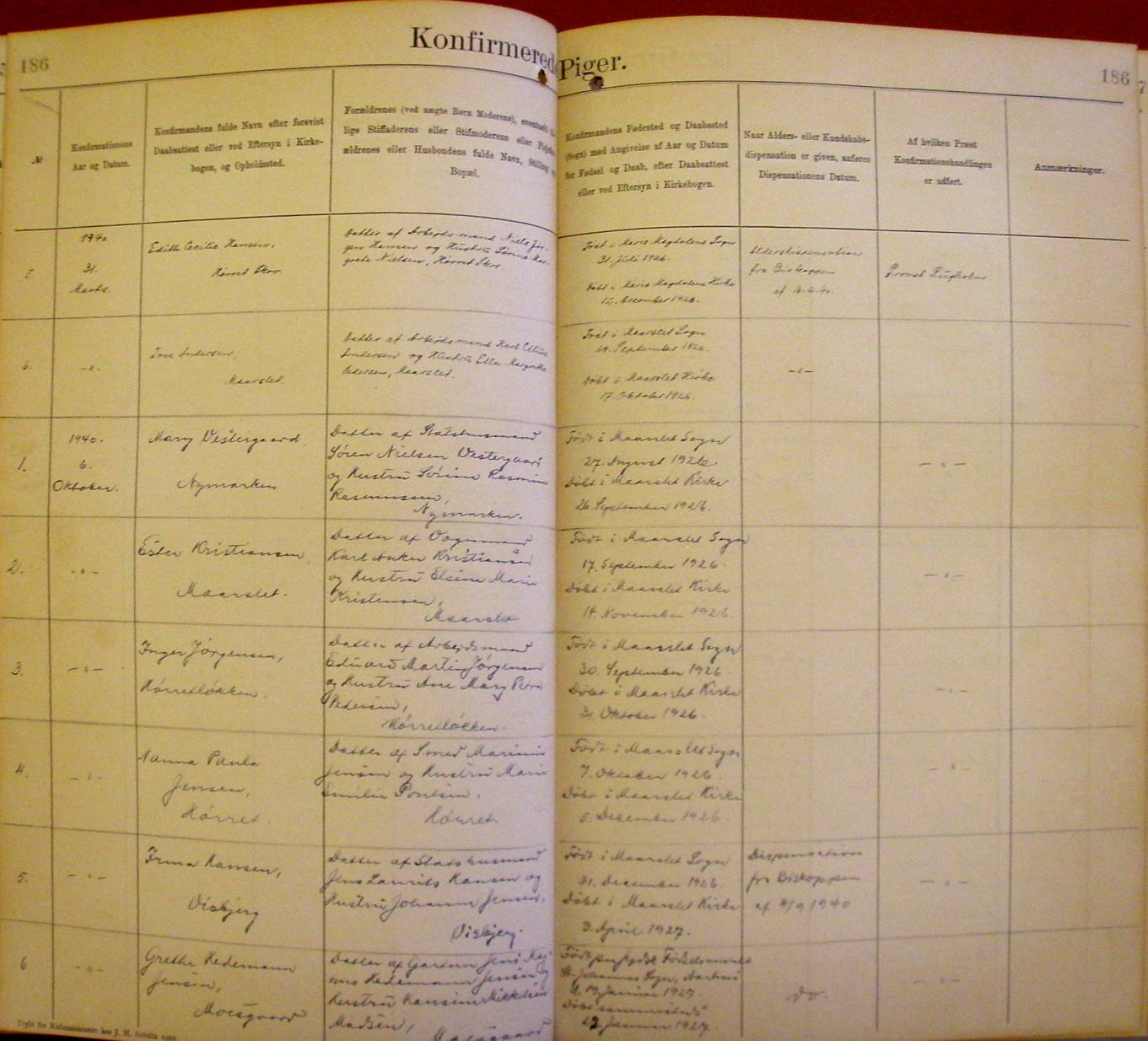 Side 186. 1940. Konfirmerede PIGER