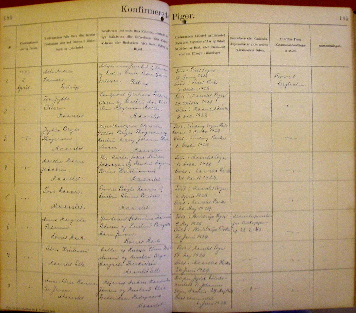 Side 189. 1943. Konfirmerede PIGER