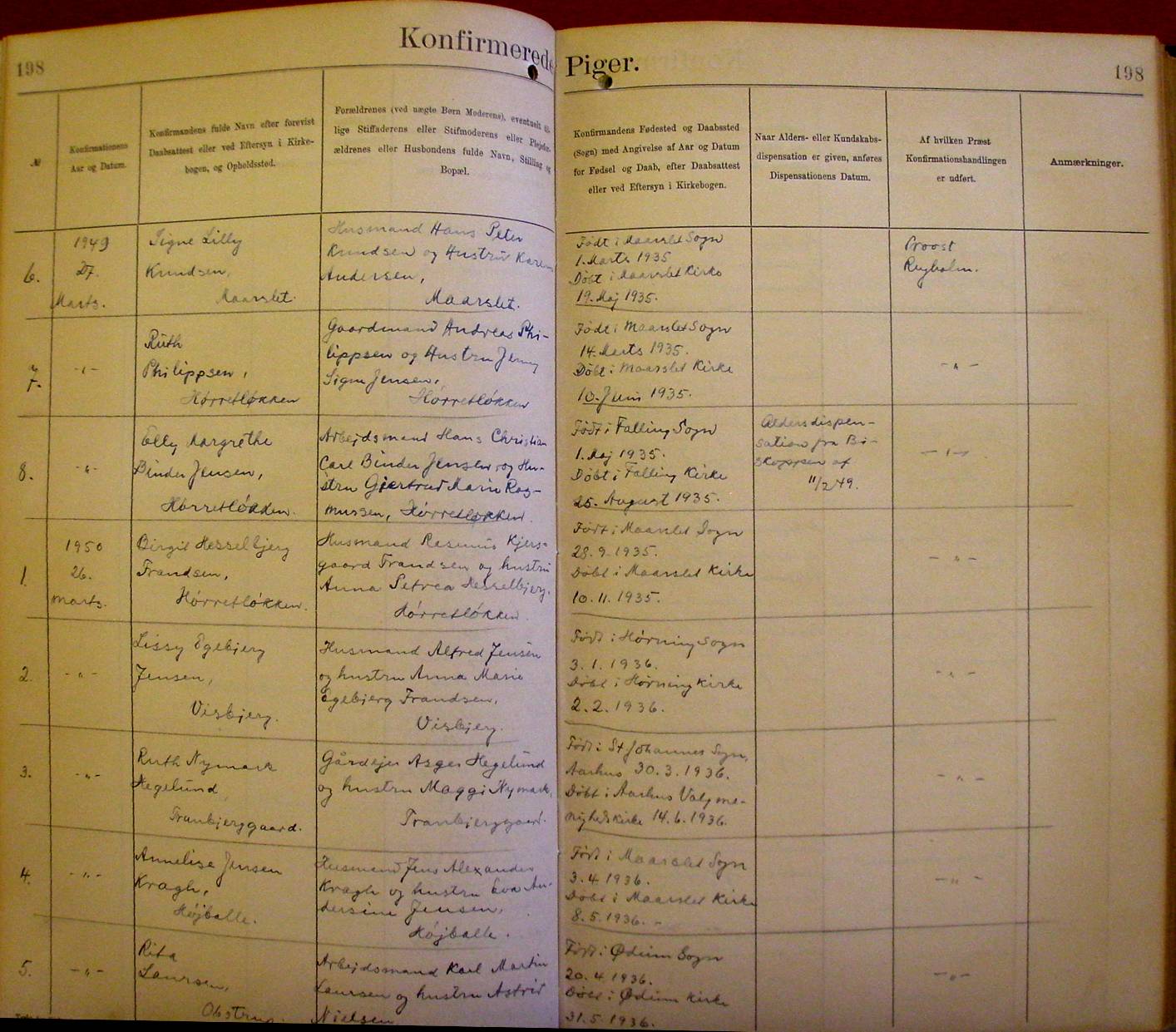 Side 198. 1949 - 1950. Konfirmerede PIGER