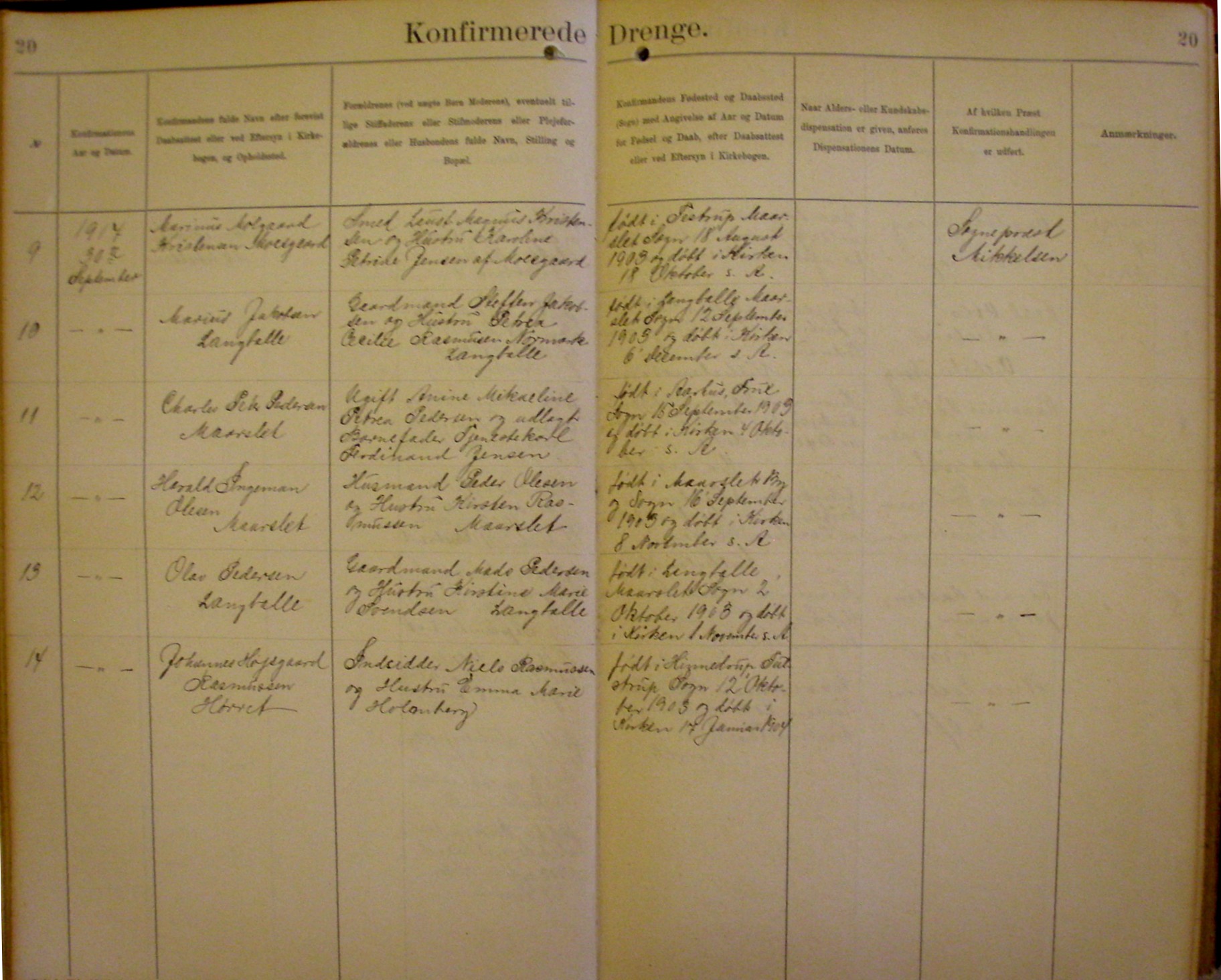 Side 20. 1917. Konfirmerede DRENGE
