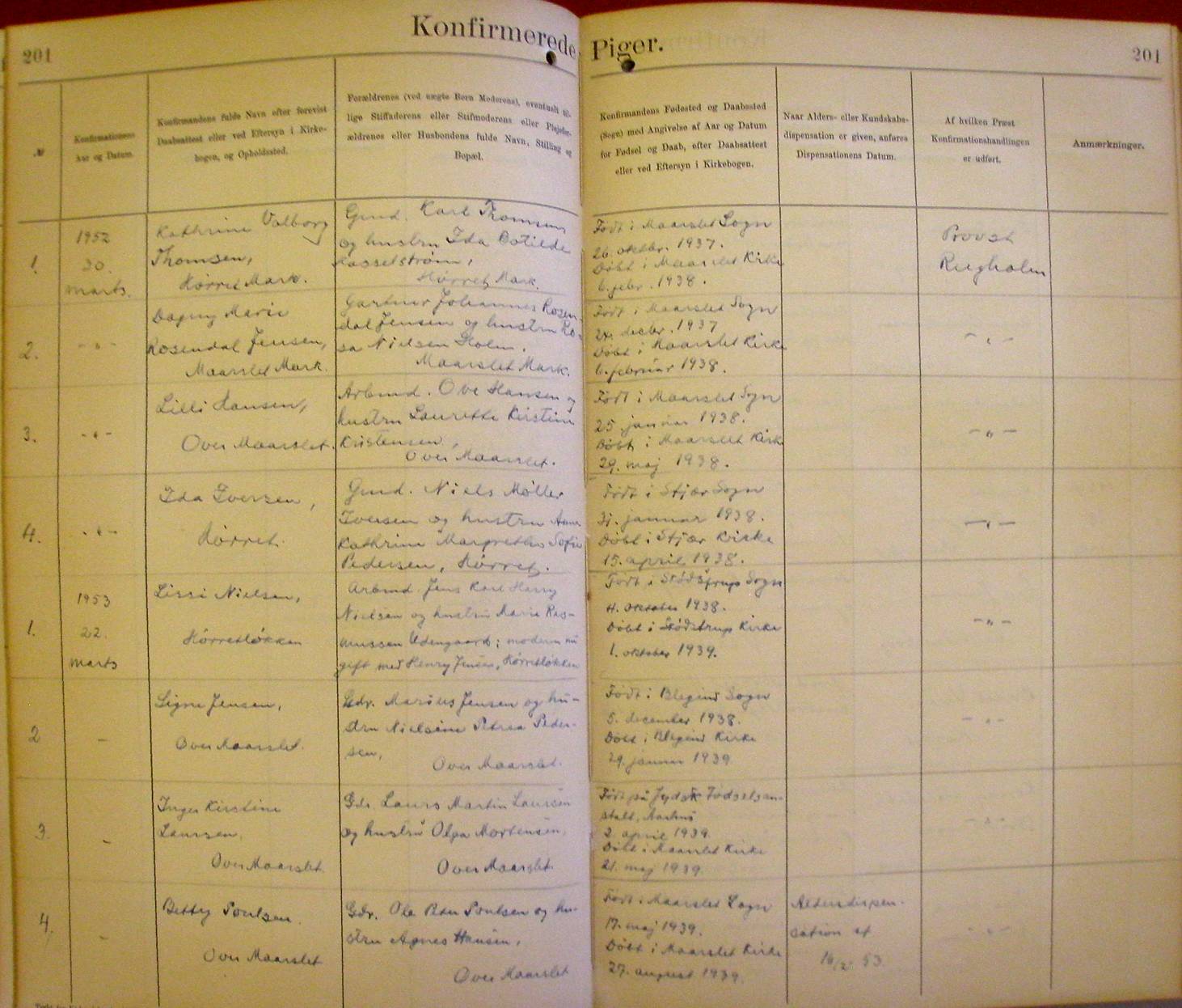 Side 201. 1952 - 1953. Konfirmerede PIGER