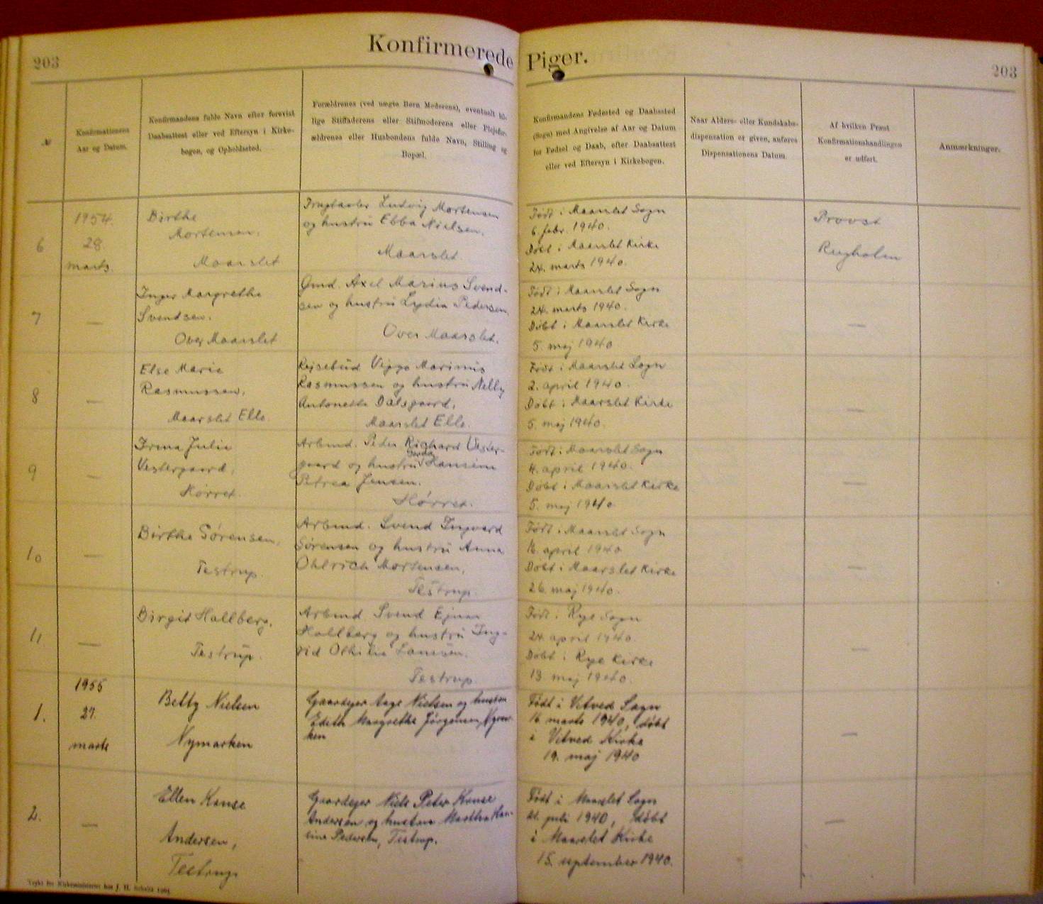 Side 203. 1954 - 1955. Konfirmerede PIGER