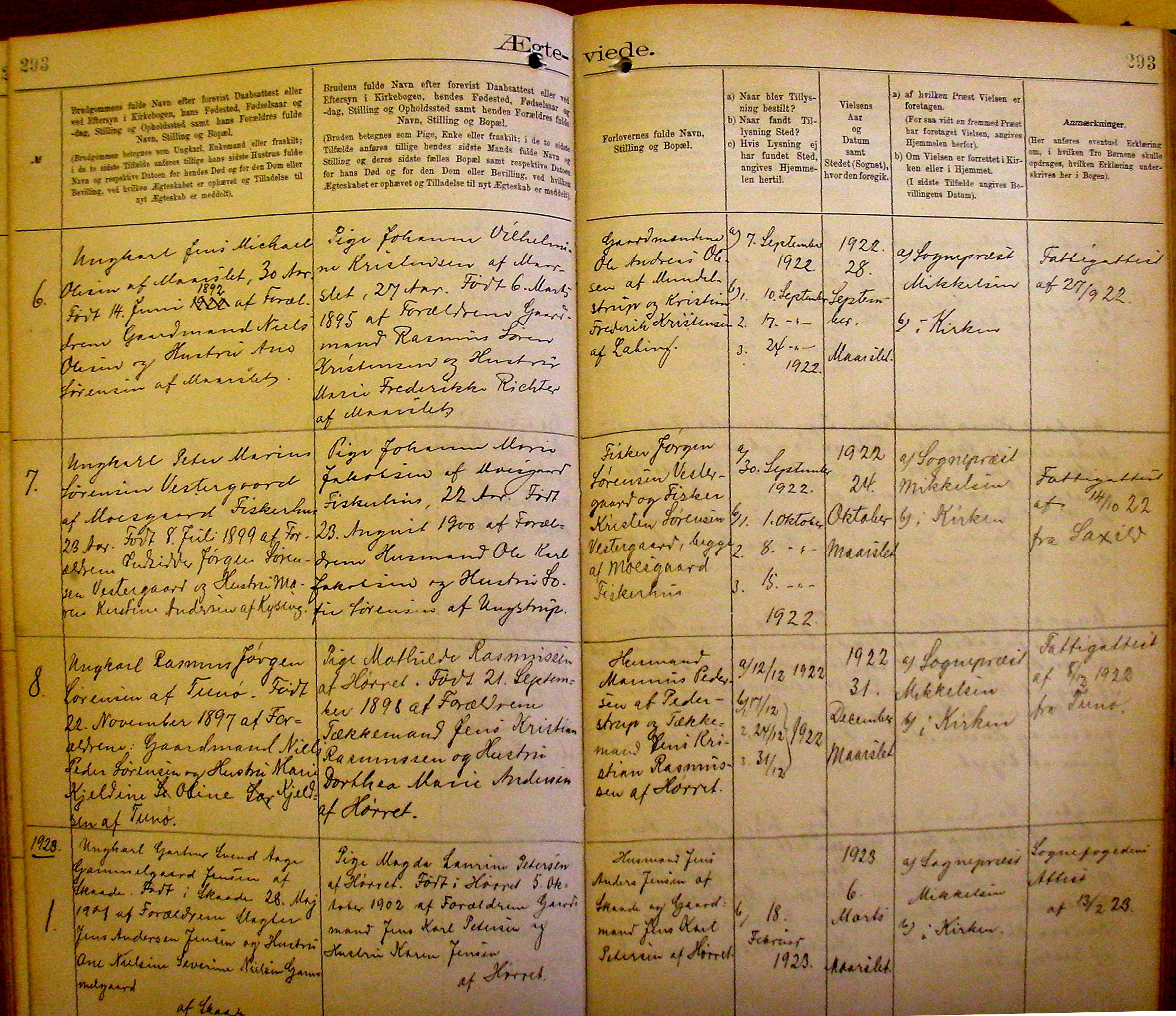 Side 293. 1922 - 1923. VIELSER