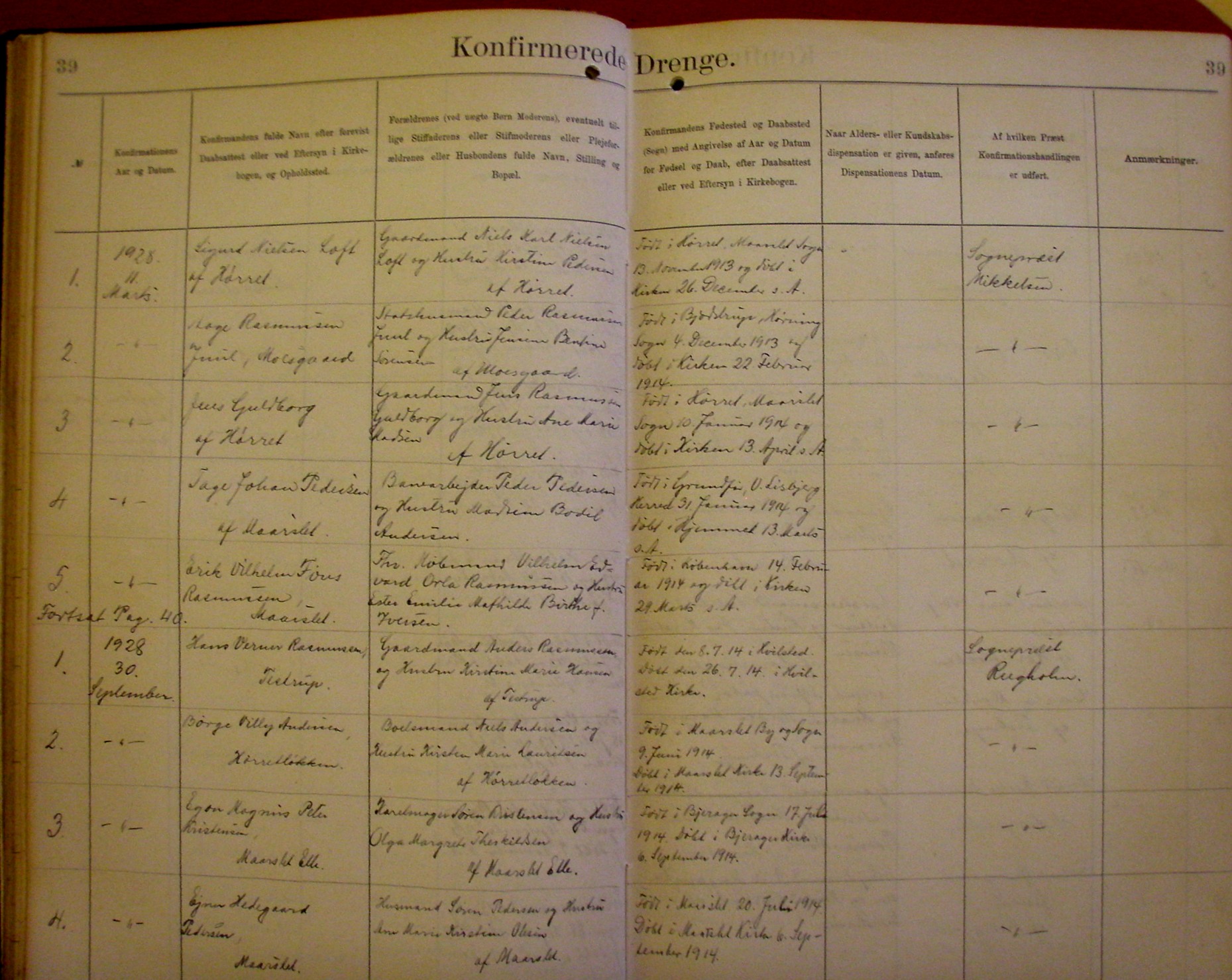 Side 39. 1928. Konfirmerede DRENGE