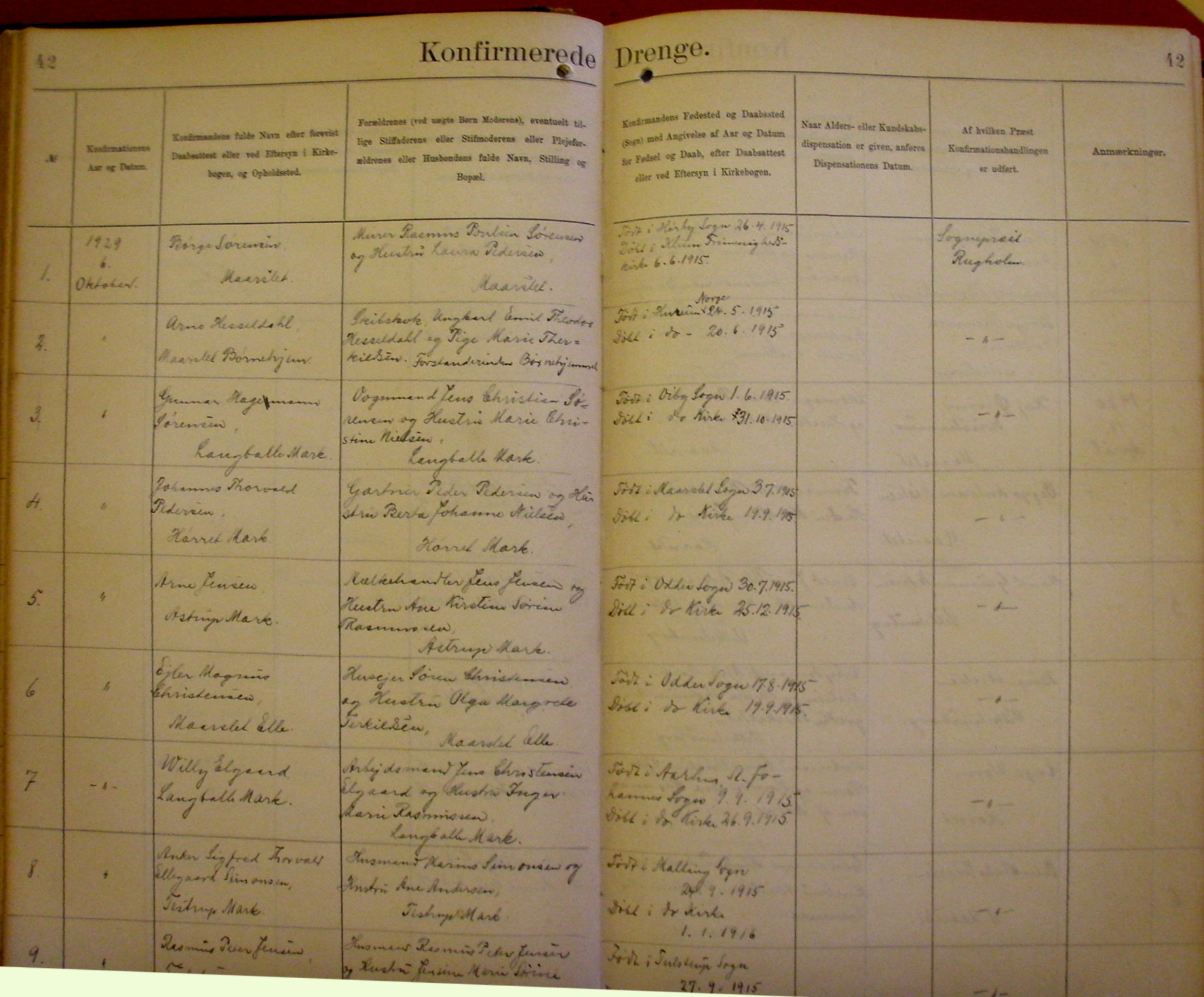 Side 42. 1929. Konfirmerede DRENGE