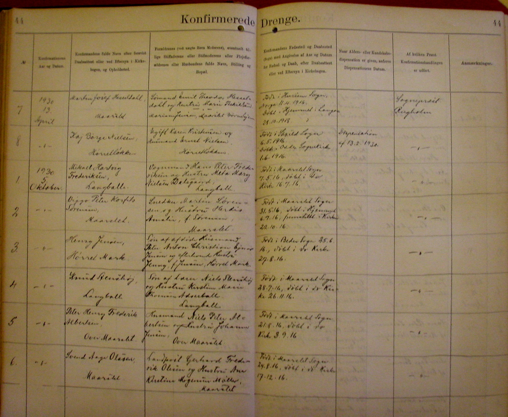 Side 44. 1930. Konfirmerede DRENGE